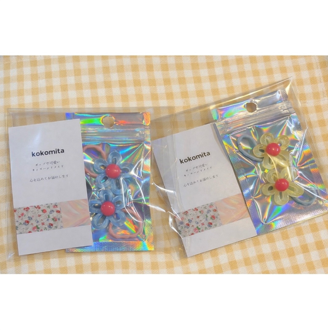 おはな ヘアゴム 2個 お花 黄色 紫 ヘアゴム交換可能◎ キッズヘアゴム 幼稚園 保育園 小学生