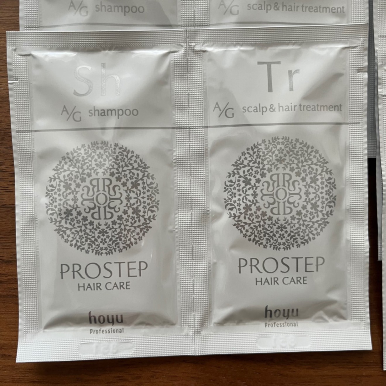 ホーユー プロステップ ヘアケア A/Gのシャンプーとトリートメントのサンプルセットです。