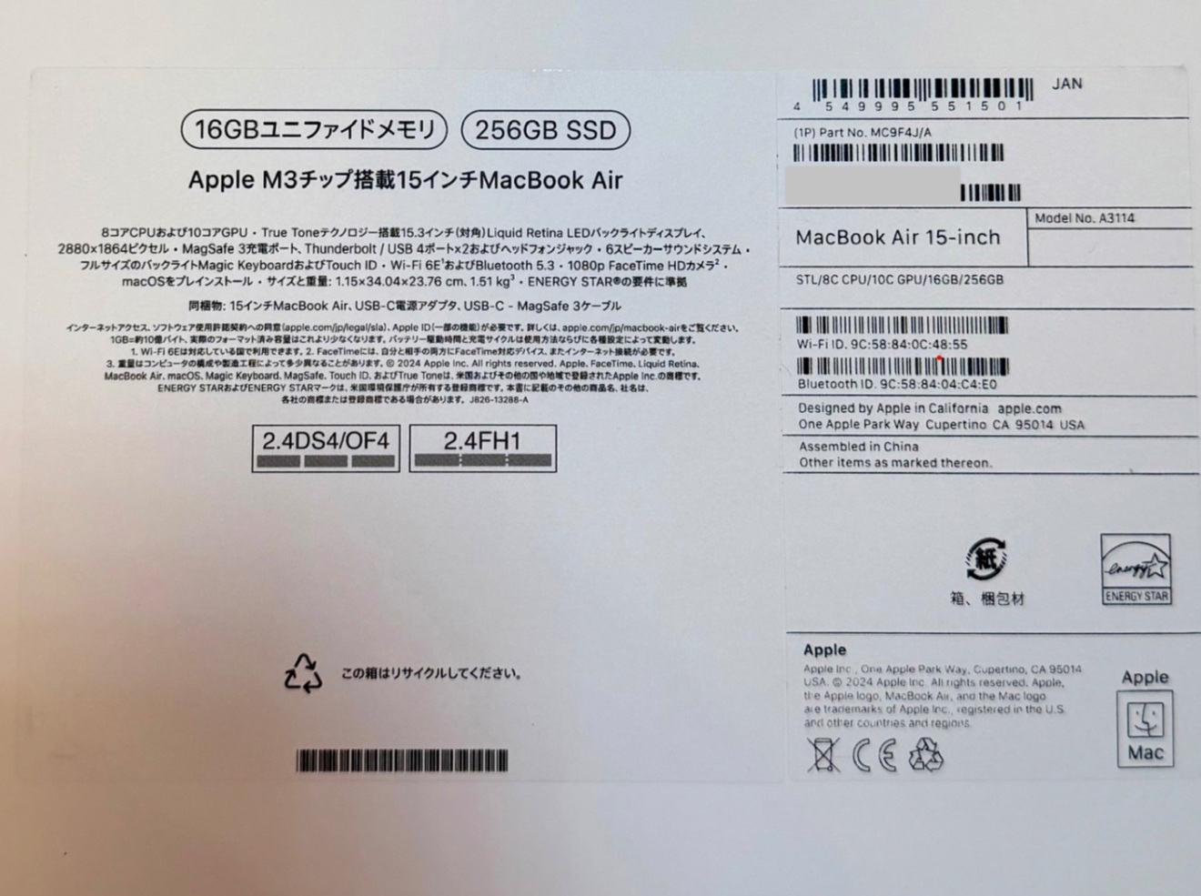 M3 MacBook Air(15.3インチ・スターライト)です。