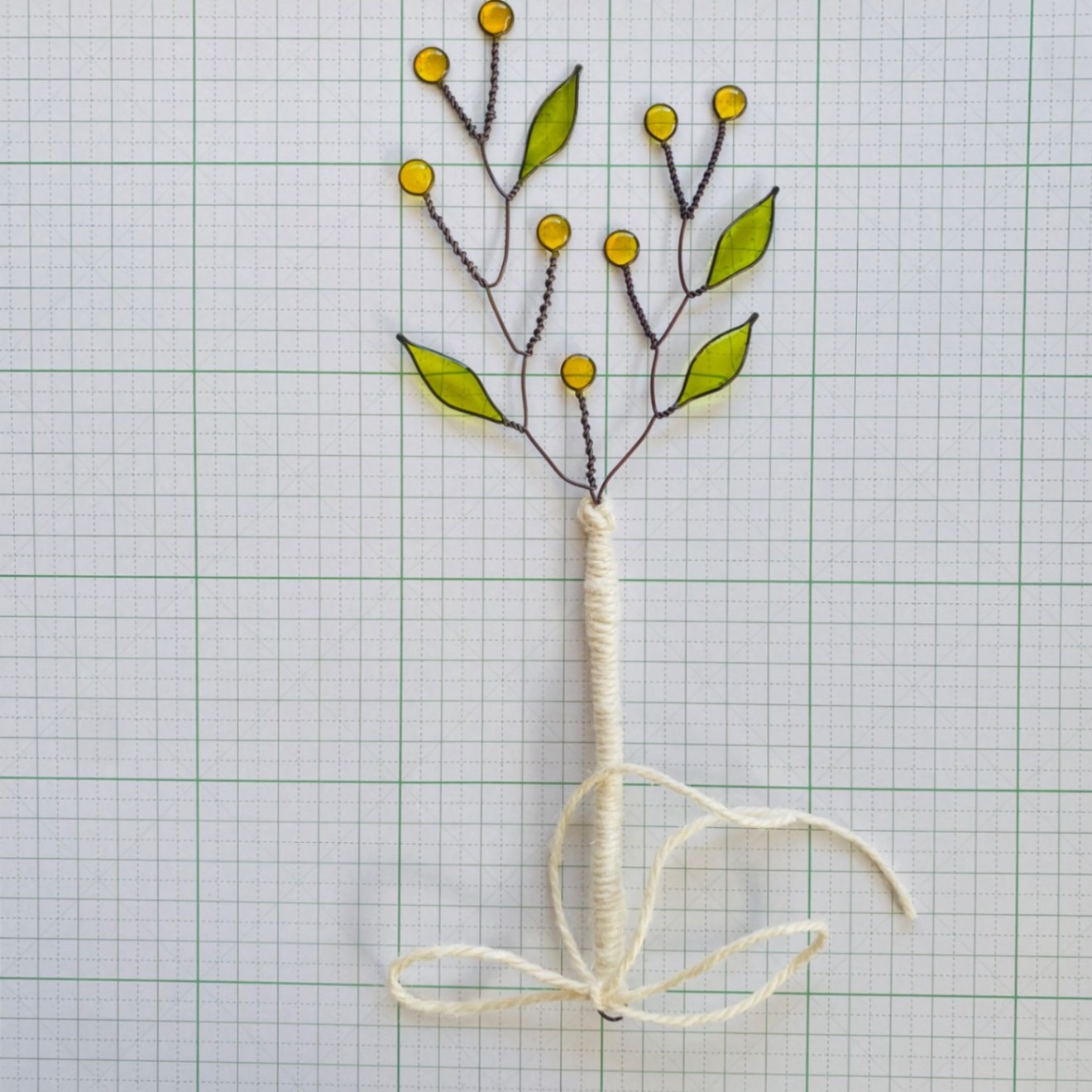 小さな黄色の実と、やさしいグリーンの葉を