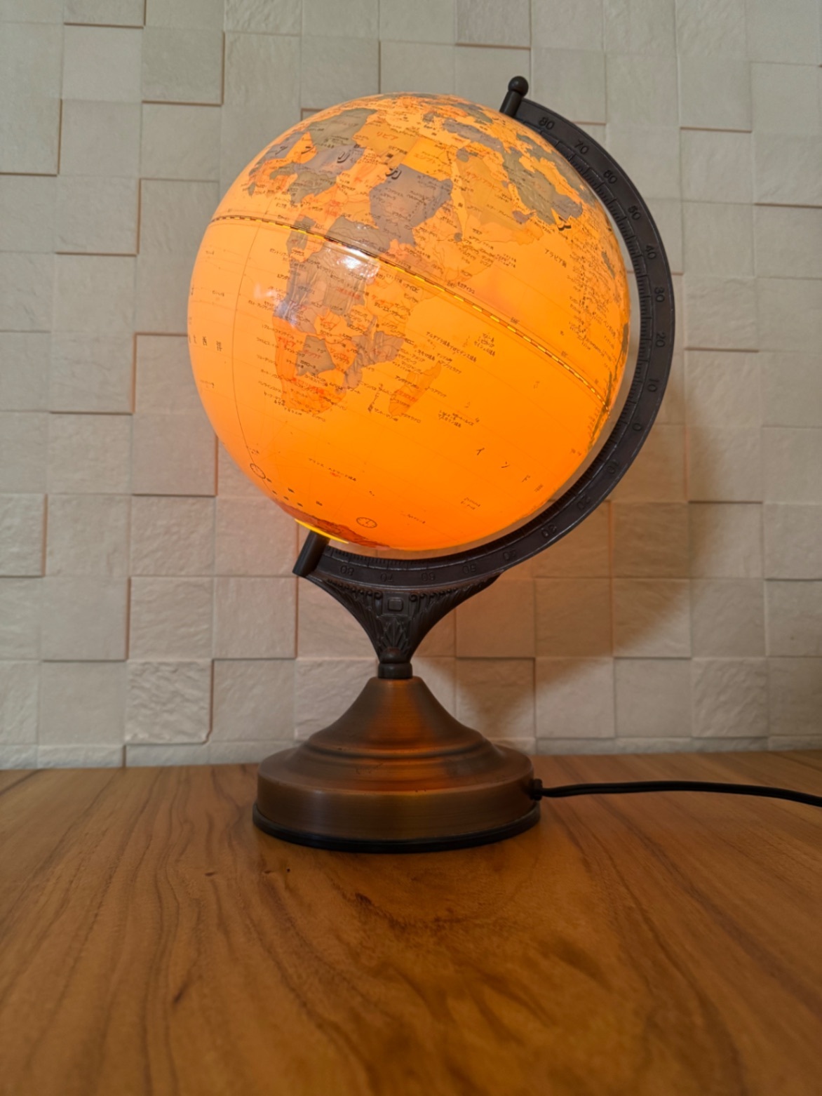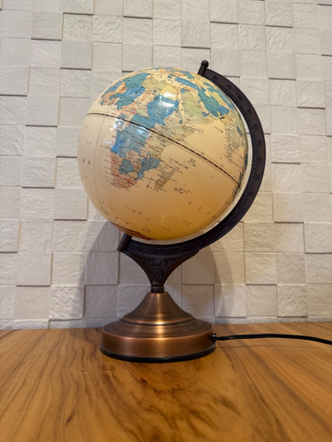 約25年前に購入した、照明付きの地球儀です。