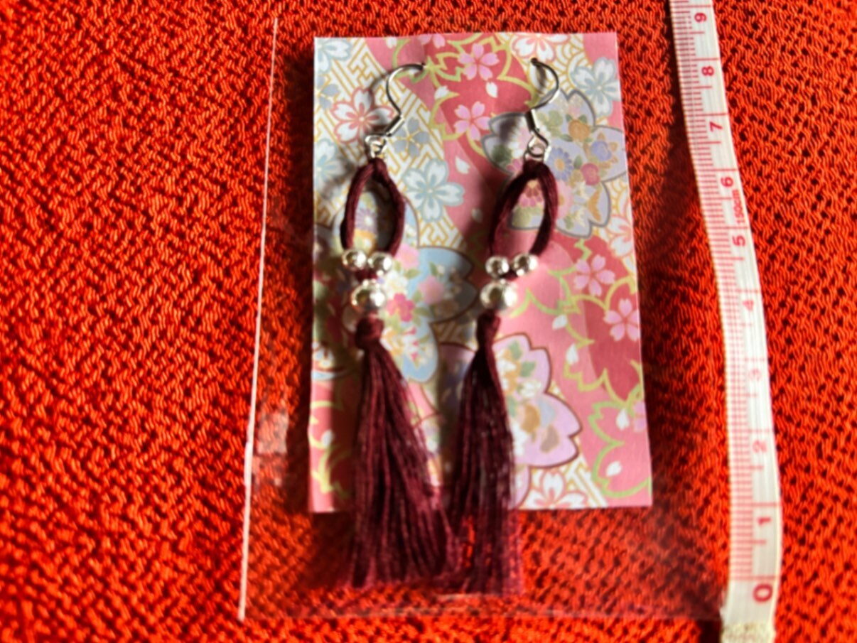 おしゃれな絹糸とパールビーズのピアス。耳元で優しく揺れる。お好きなピアスお一つ選択してね 絹100%