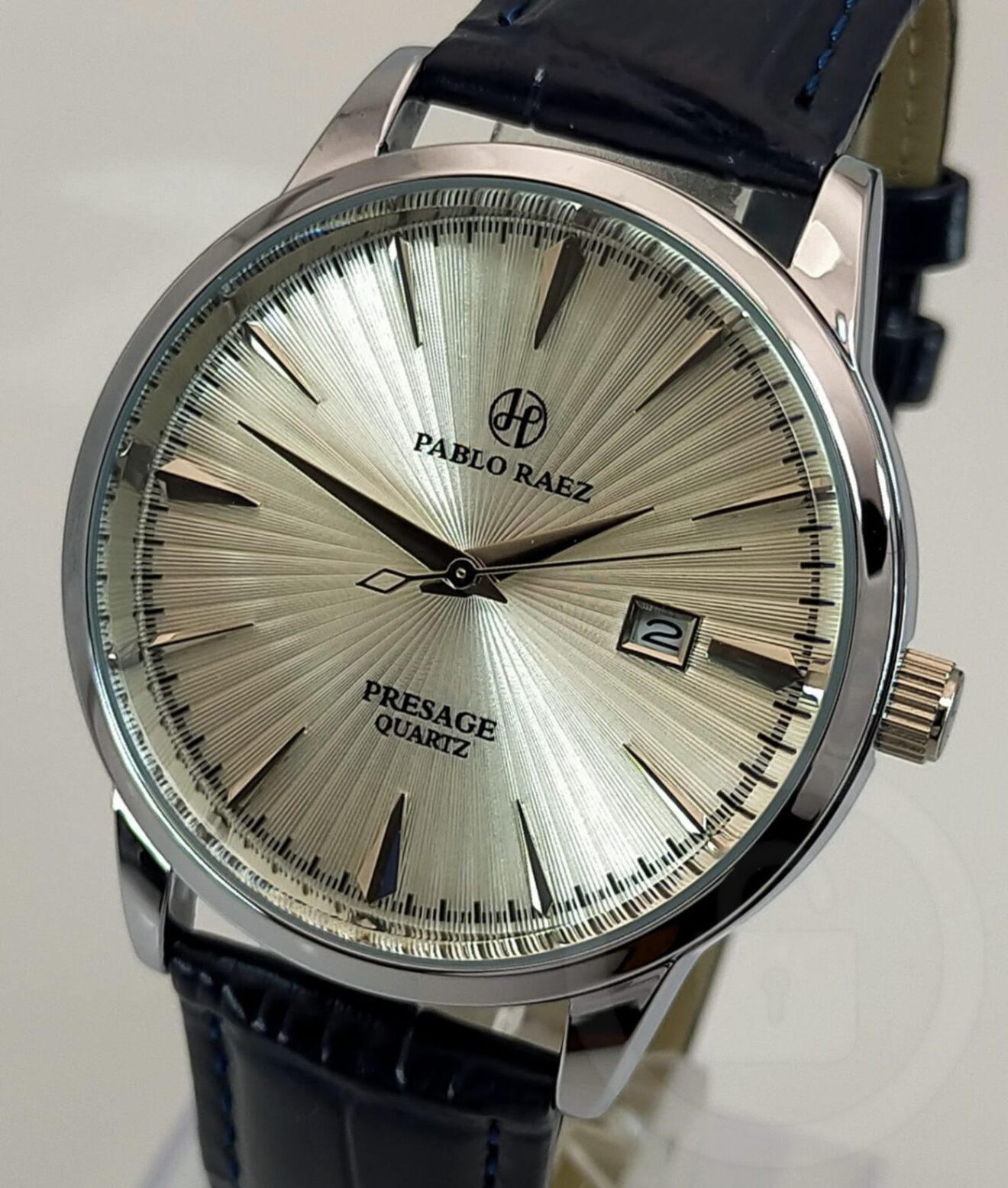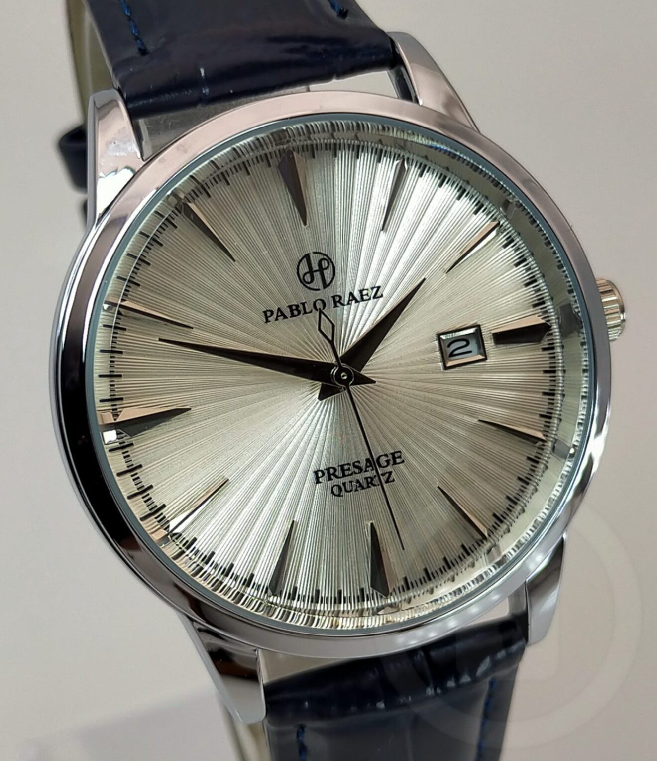 《圧倒的造形力》磨き抜かれた脚線美文字盤【クォーツにして滑らかな運針/新品】ロイヤルブルーレザー