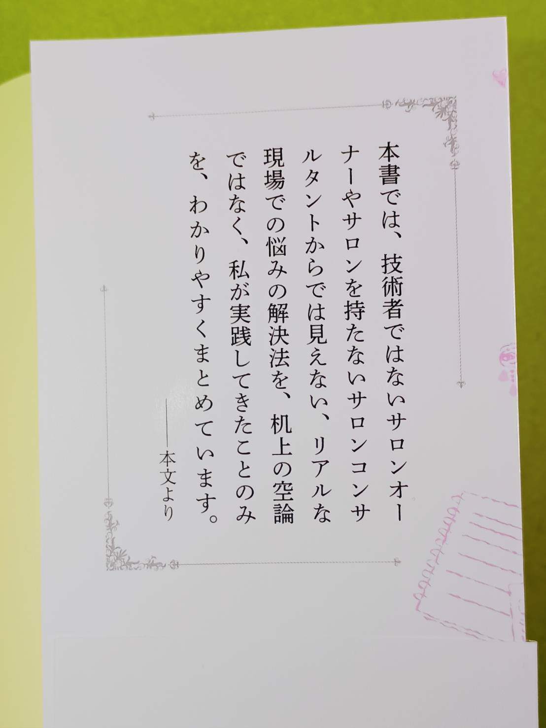 著者の実体験に基づいた、美容系サロンを経営したい方に向けの本です。