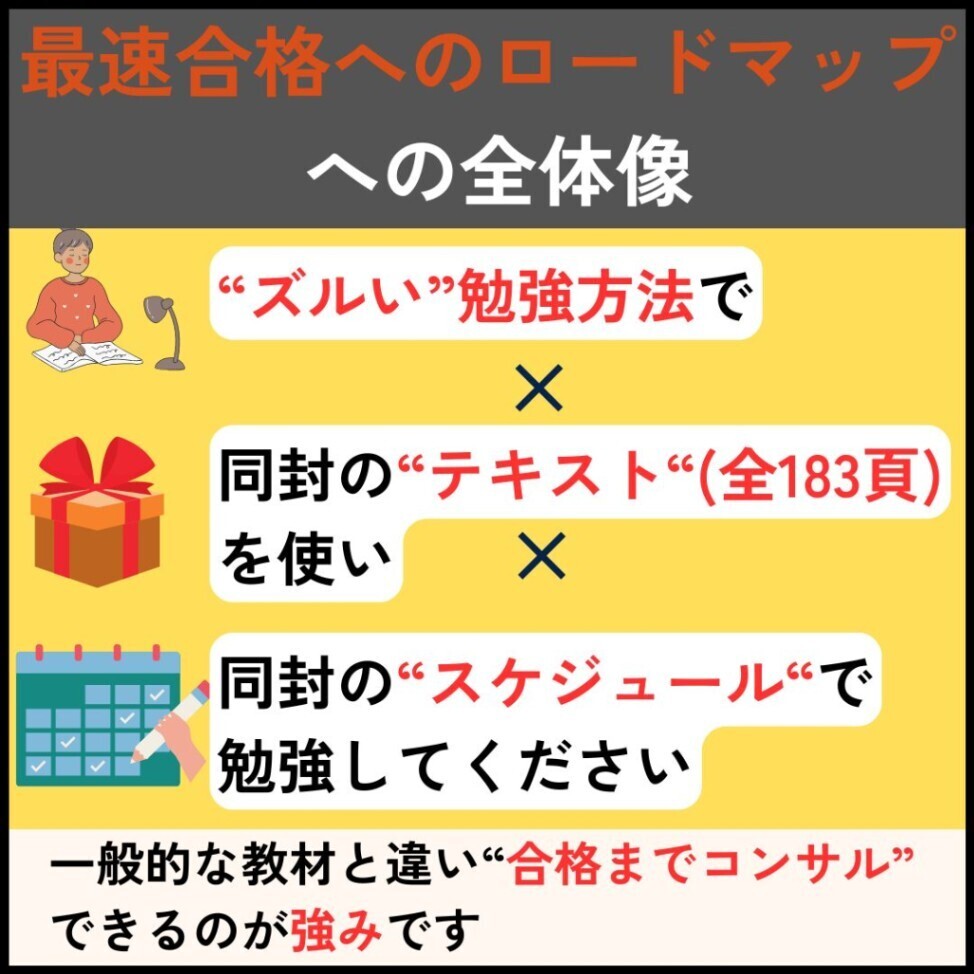 ✅一般的な教材だけでなく合格ロードマップまでご提供