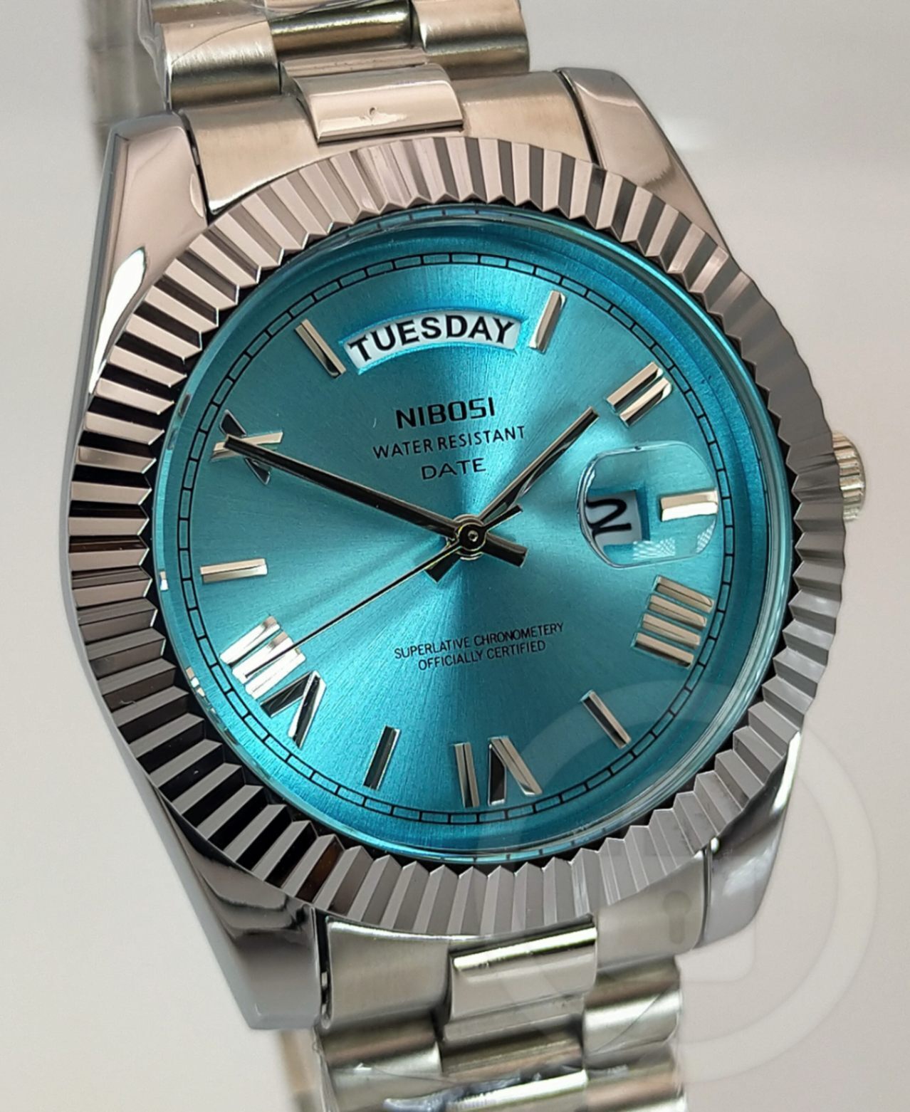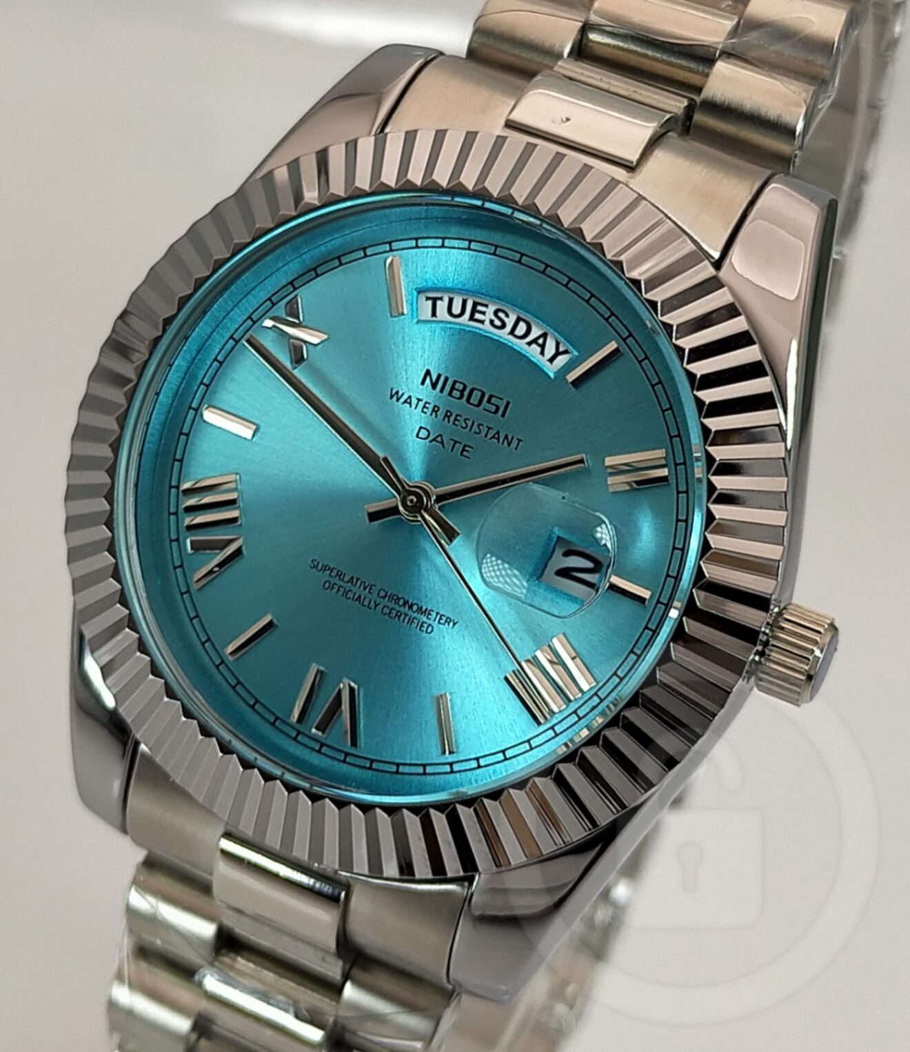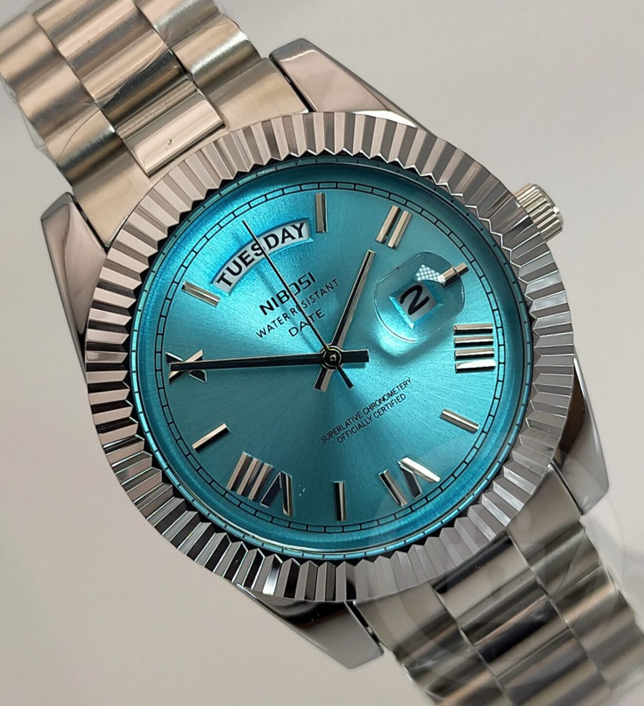 美しきスカイブルー文字盤【ハイステイタス系モデル/新品】デイデイト機能搭載 曜日/日付ダブル表示