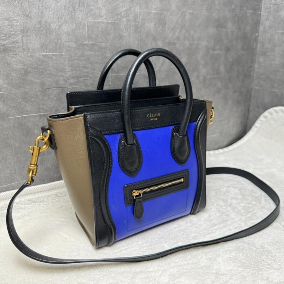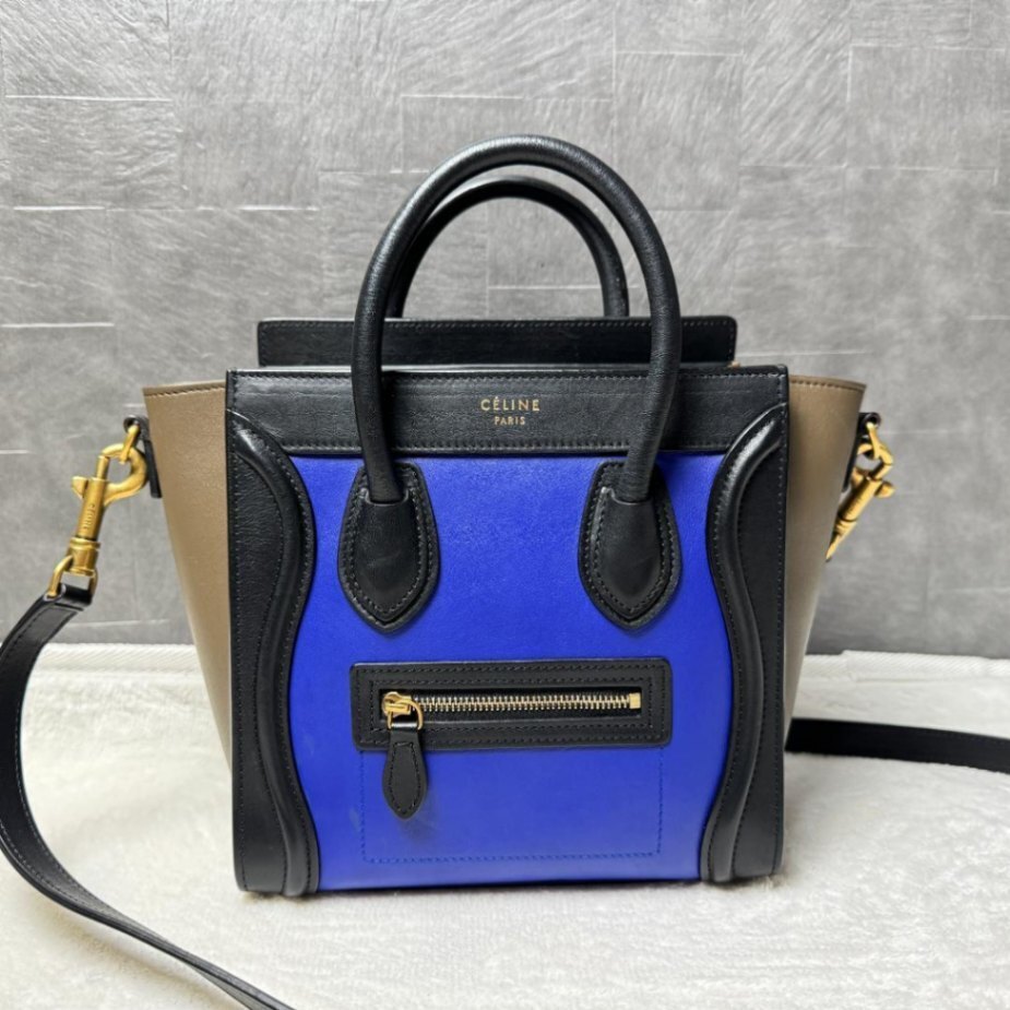 美品☆CÉLINE セリーヌ ラゲージ ナノ レザー バイカラー ブルー