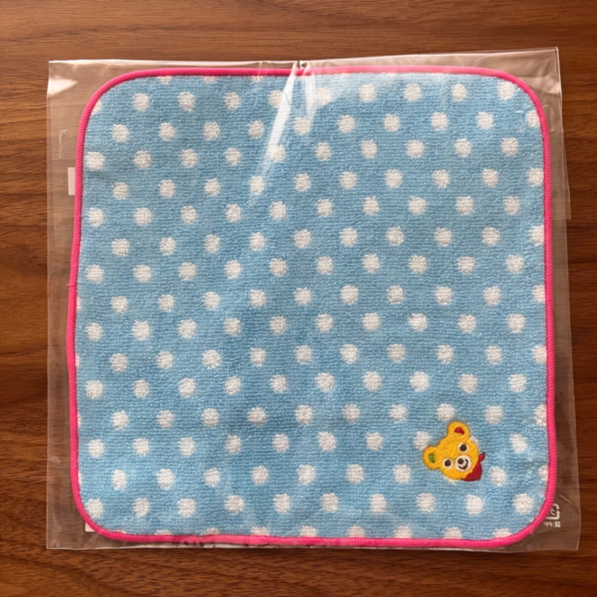 可愛らしいドット柄に、くまのキャラクターが刺繍されています。