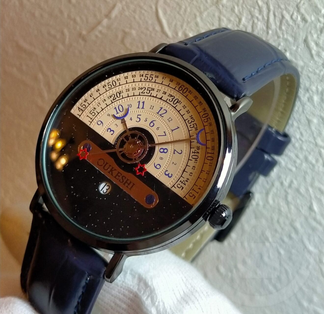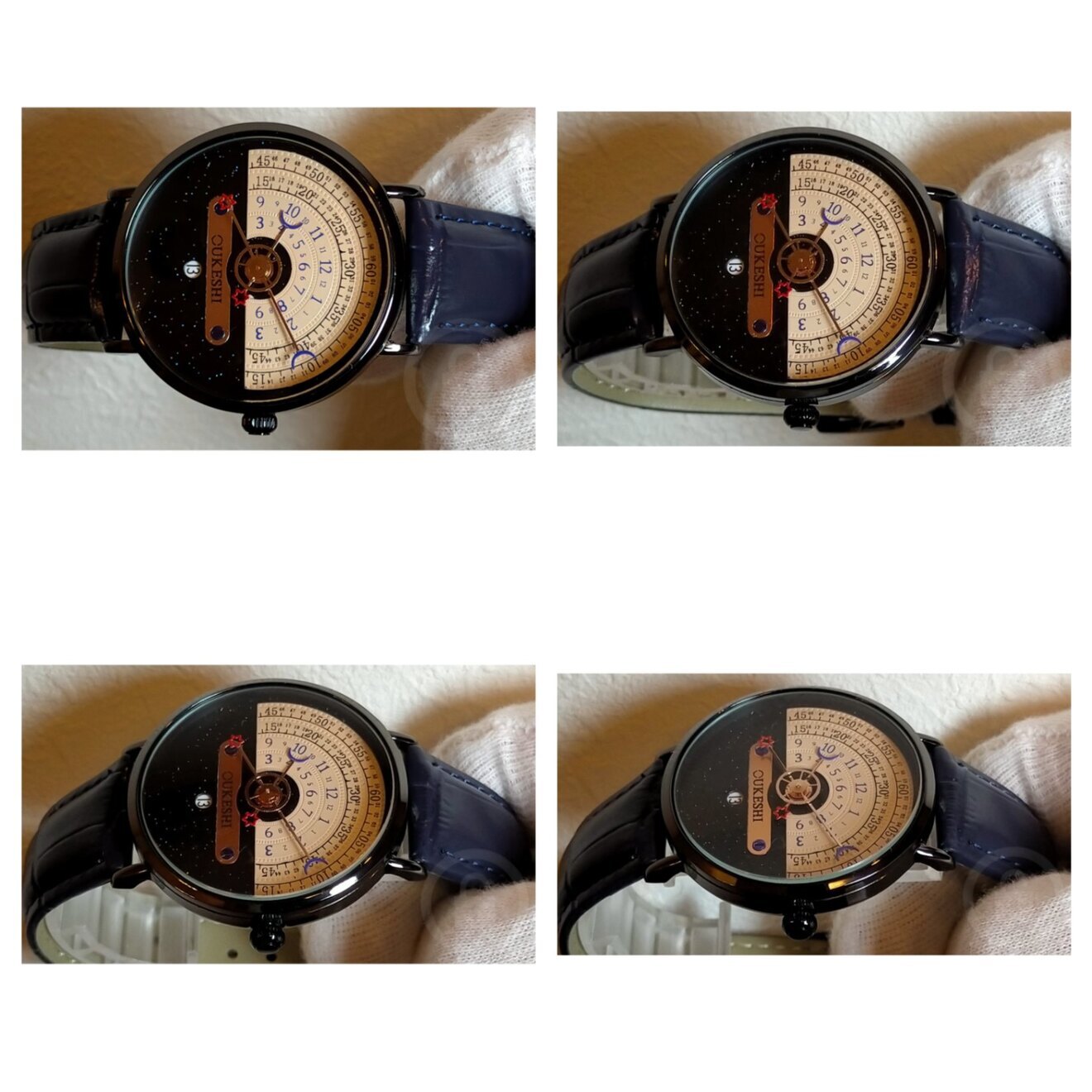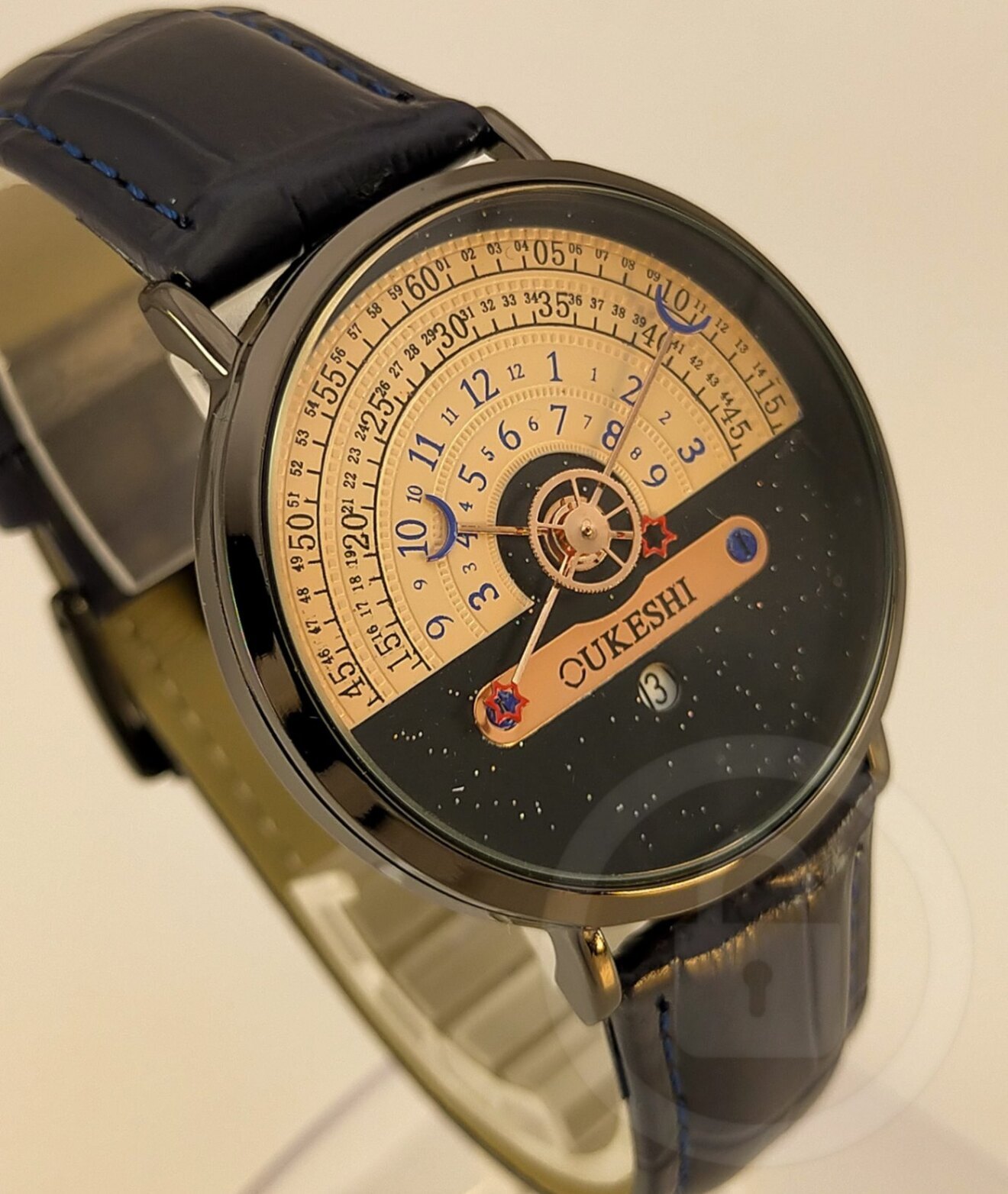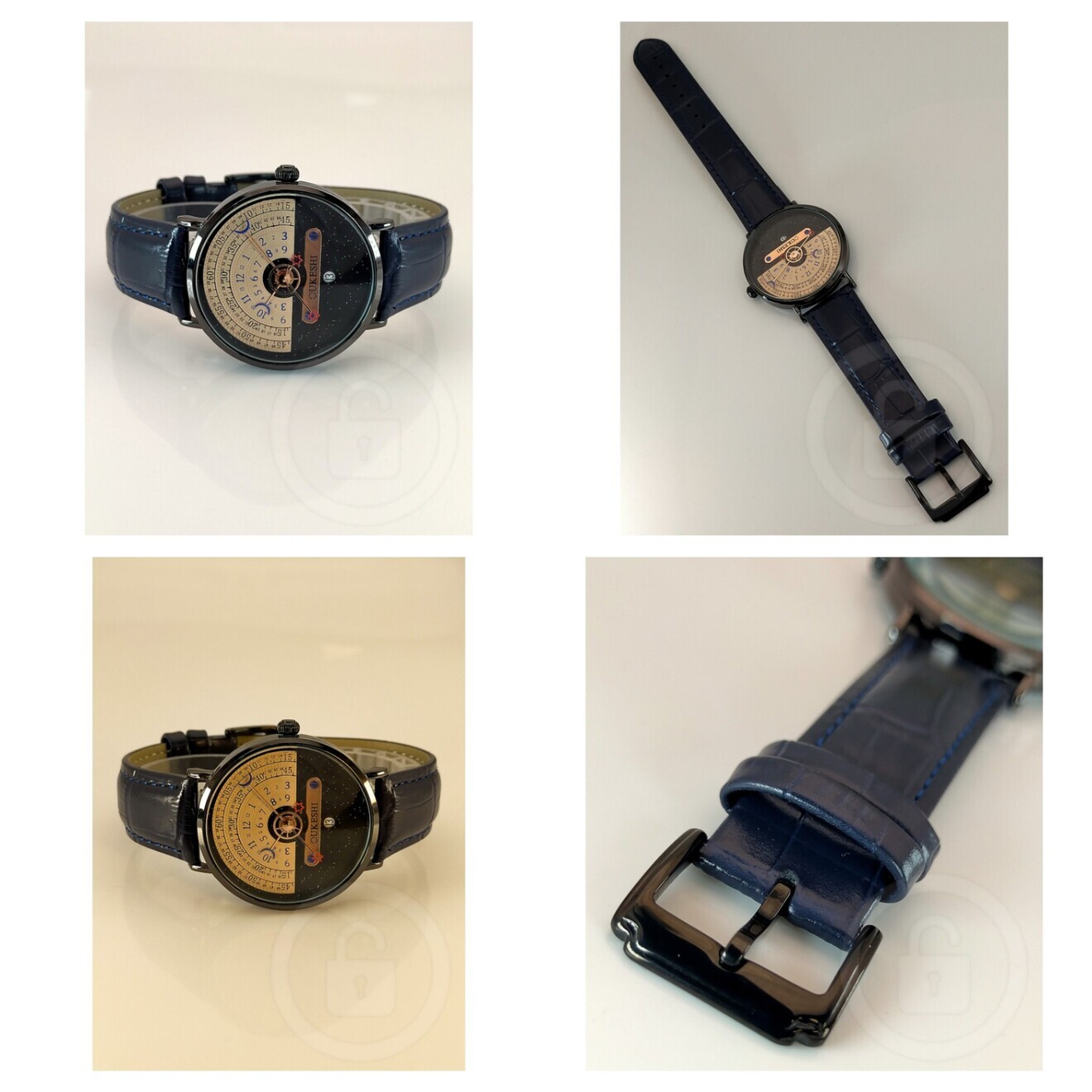 【100年の時刻表示方を覆す画期的ドレスウォッチ/新品】ブラック/アイボリー/ロイヤルブルーレザー