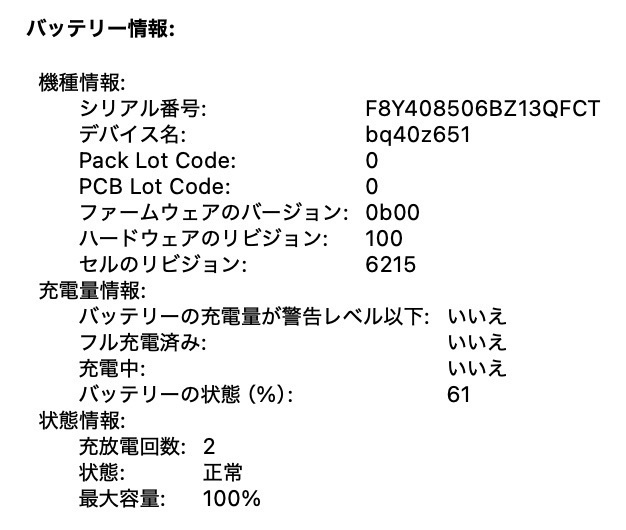 ・バッテリー最大容量、充放電回数は撮影時点の状態のため時間経過により変動ございます。
