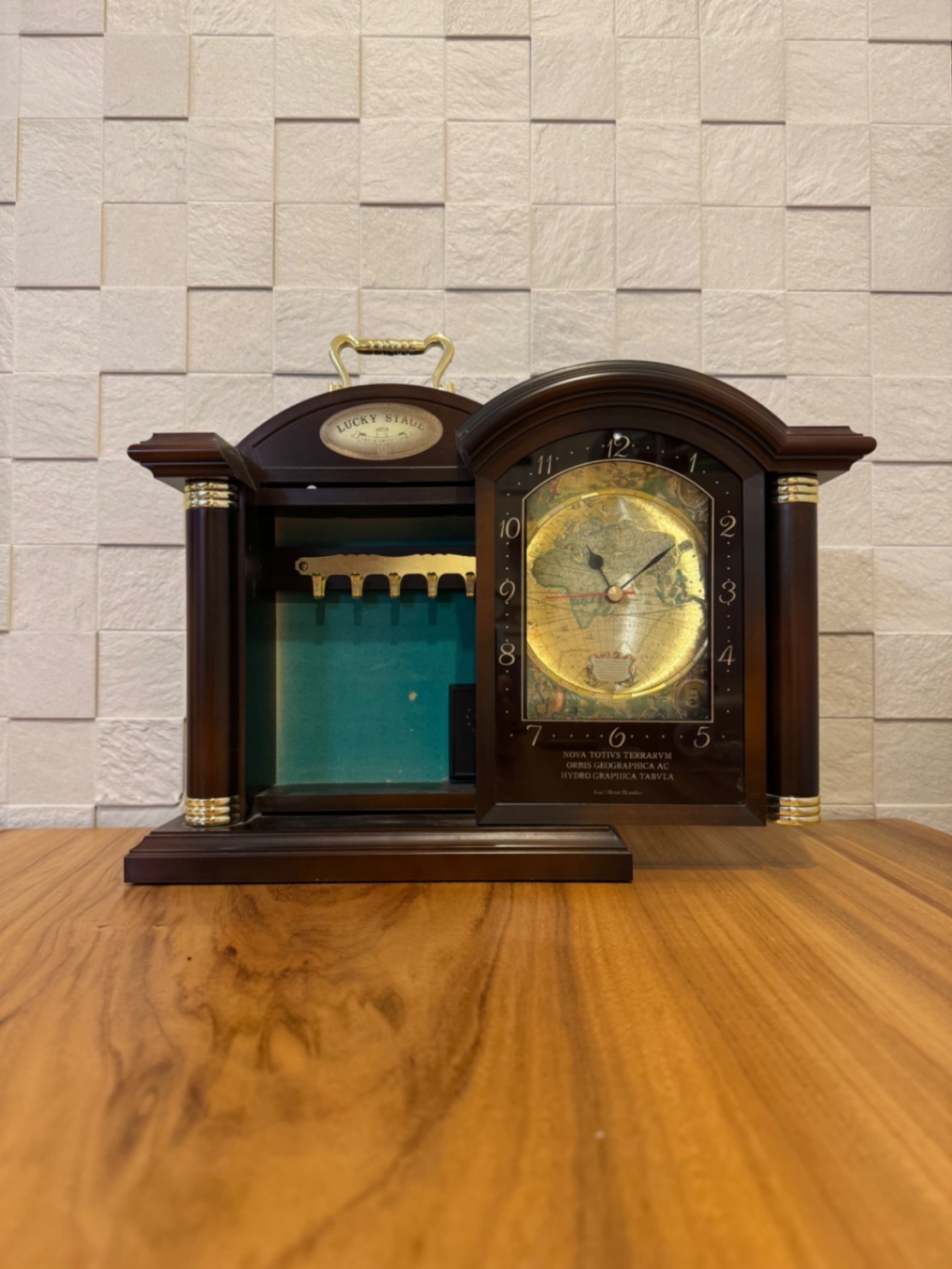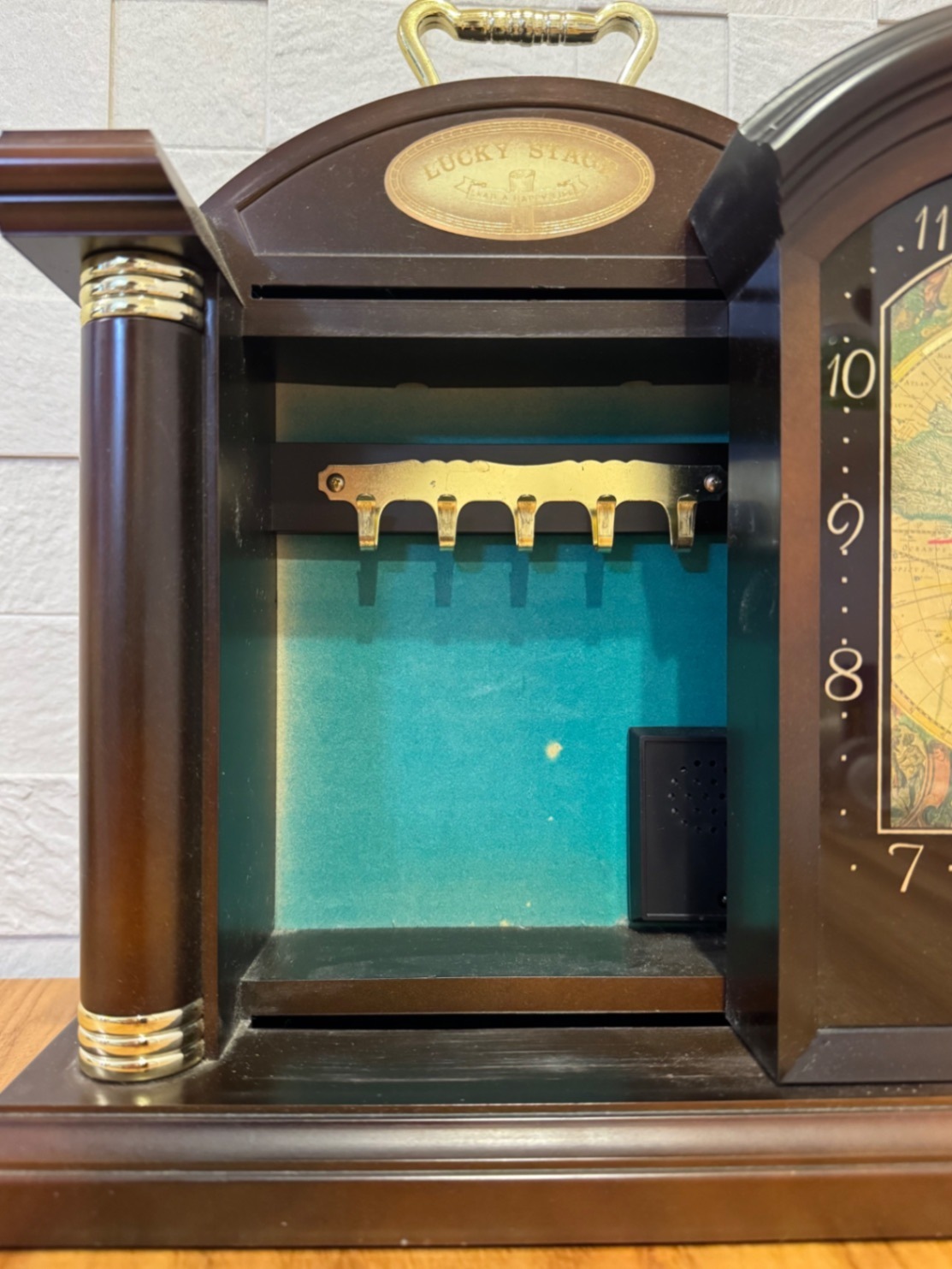 アンティーク時計 鍵付き収納一体型|世界地図デザイン|動作不可・インテリア用