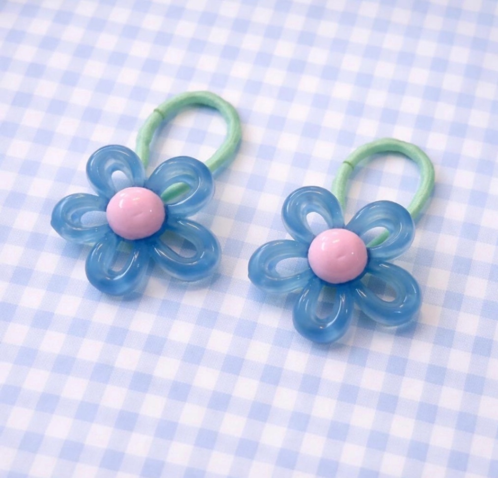 お花 ヘアゴム 水色 キッズヘアゴム ハンドメイド 幼稚園 保育園 小学生