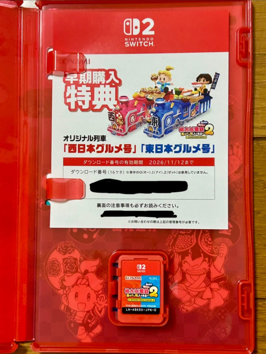 早期購入特典のオリジナル列車「グルメ号」ダウンロードコードが記載された特典用紙もお付けします。