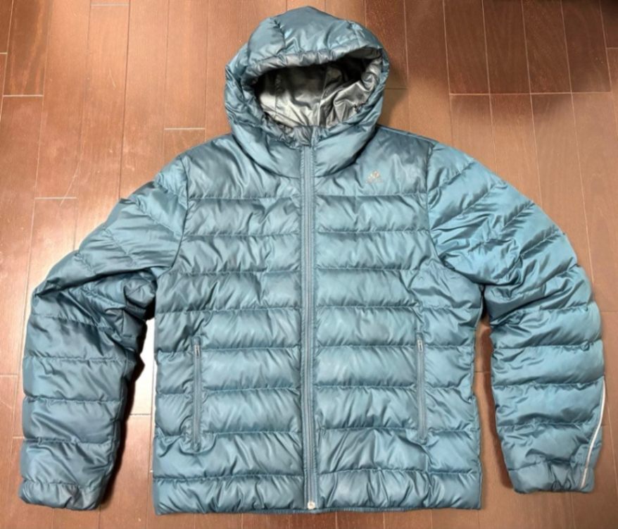 軽量で保温性に優れたadidasのフード付きダウンジャケット