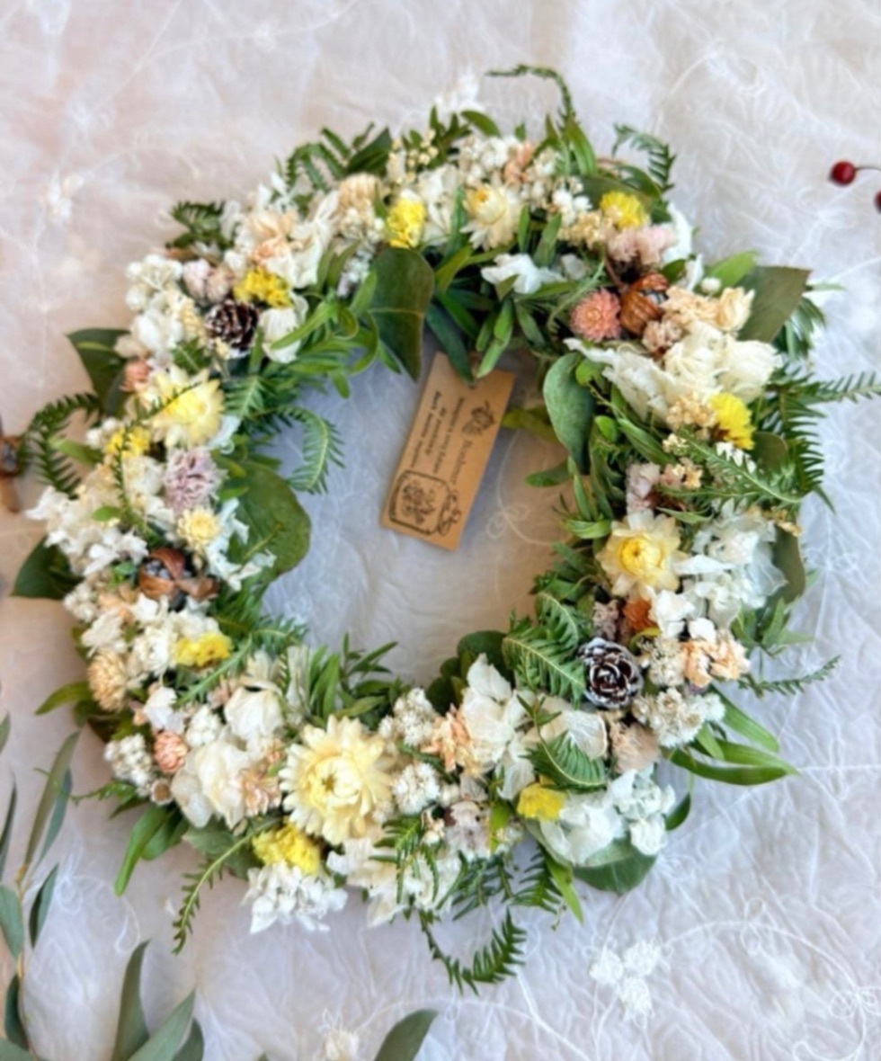 やさしい時間を纏う ボタニカル・ドライフラワーリース(ナチュラルホワイト)