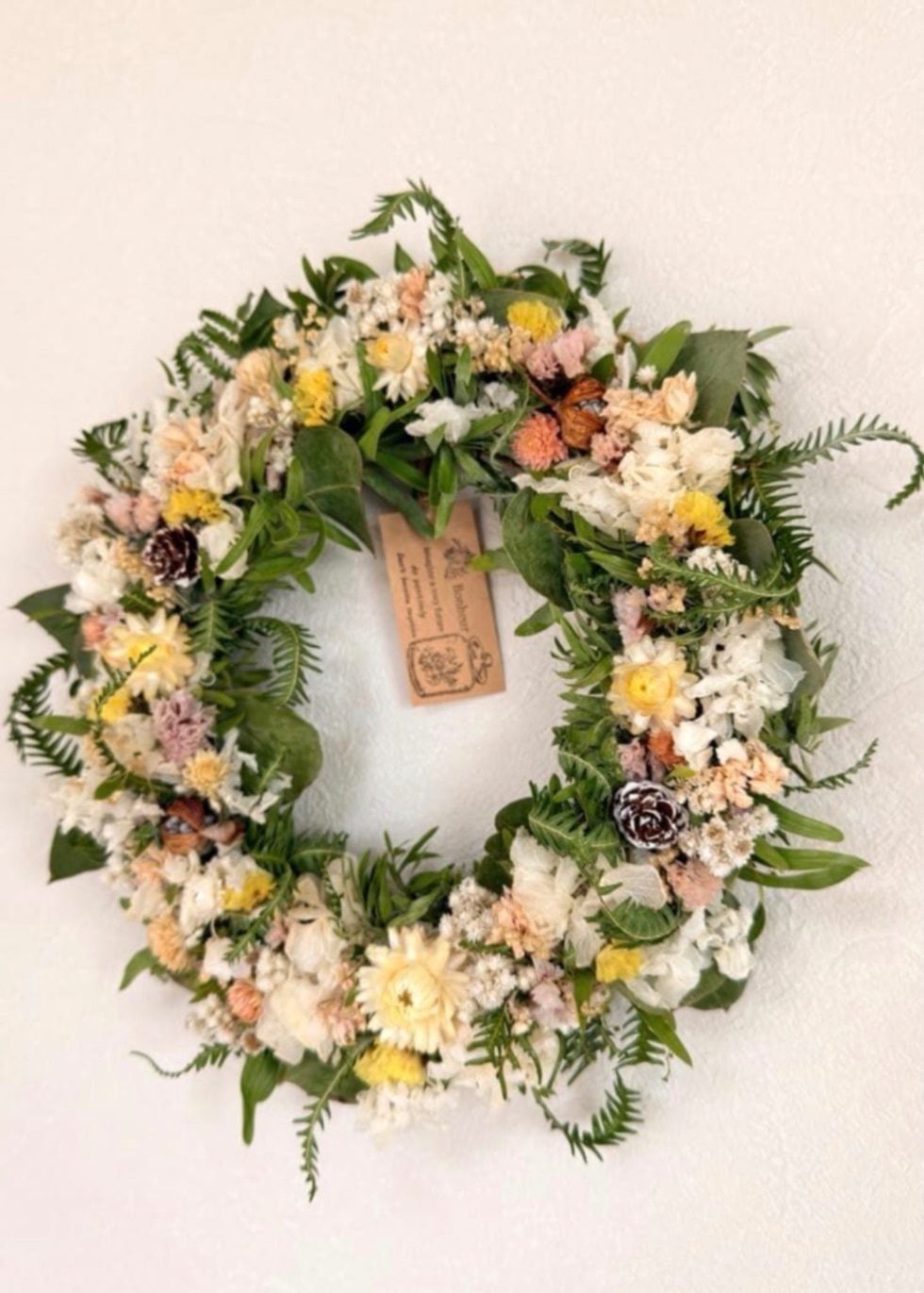 ナチュラルテイストのドライフラワーリースです。