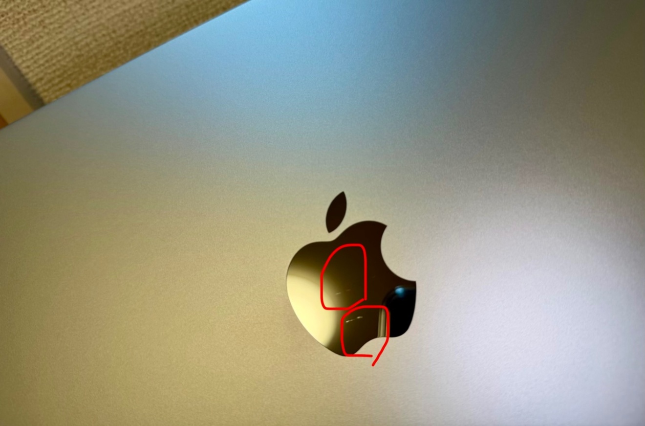 ・表面のAppleロゴマーク部分に、薄い線傷があります(※写真の赤丸参照)