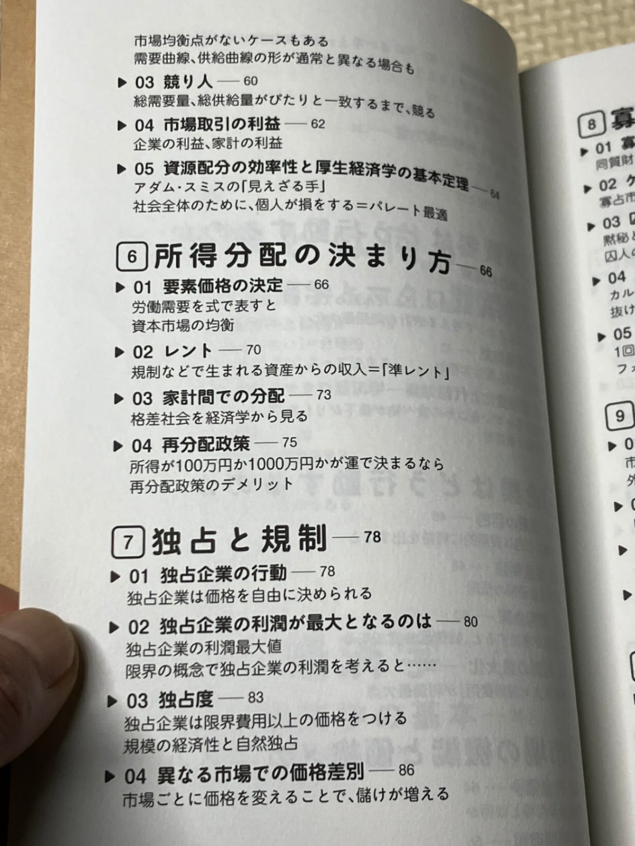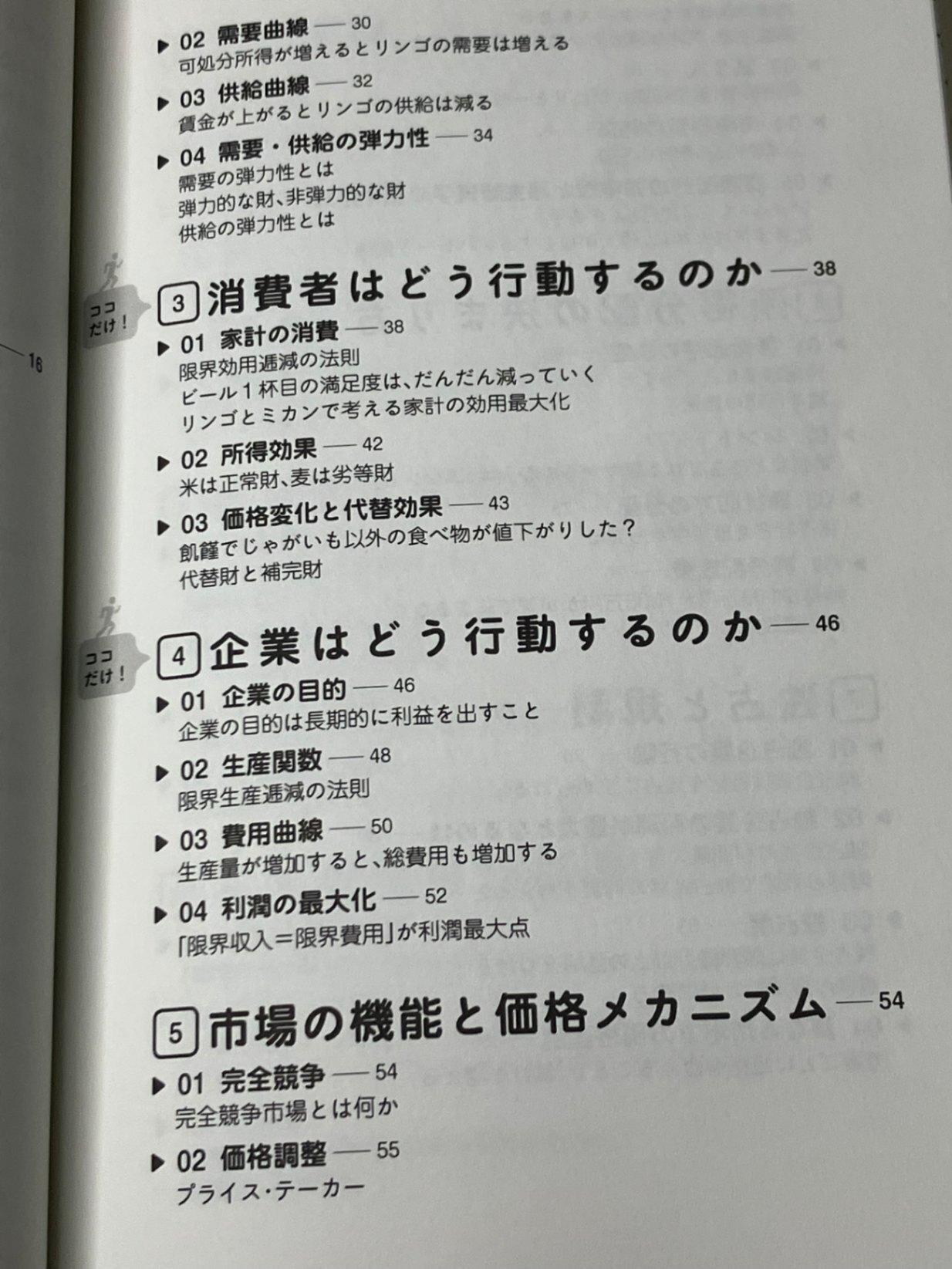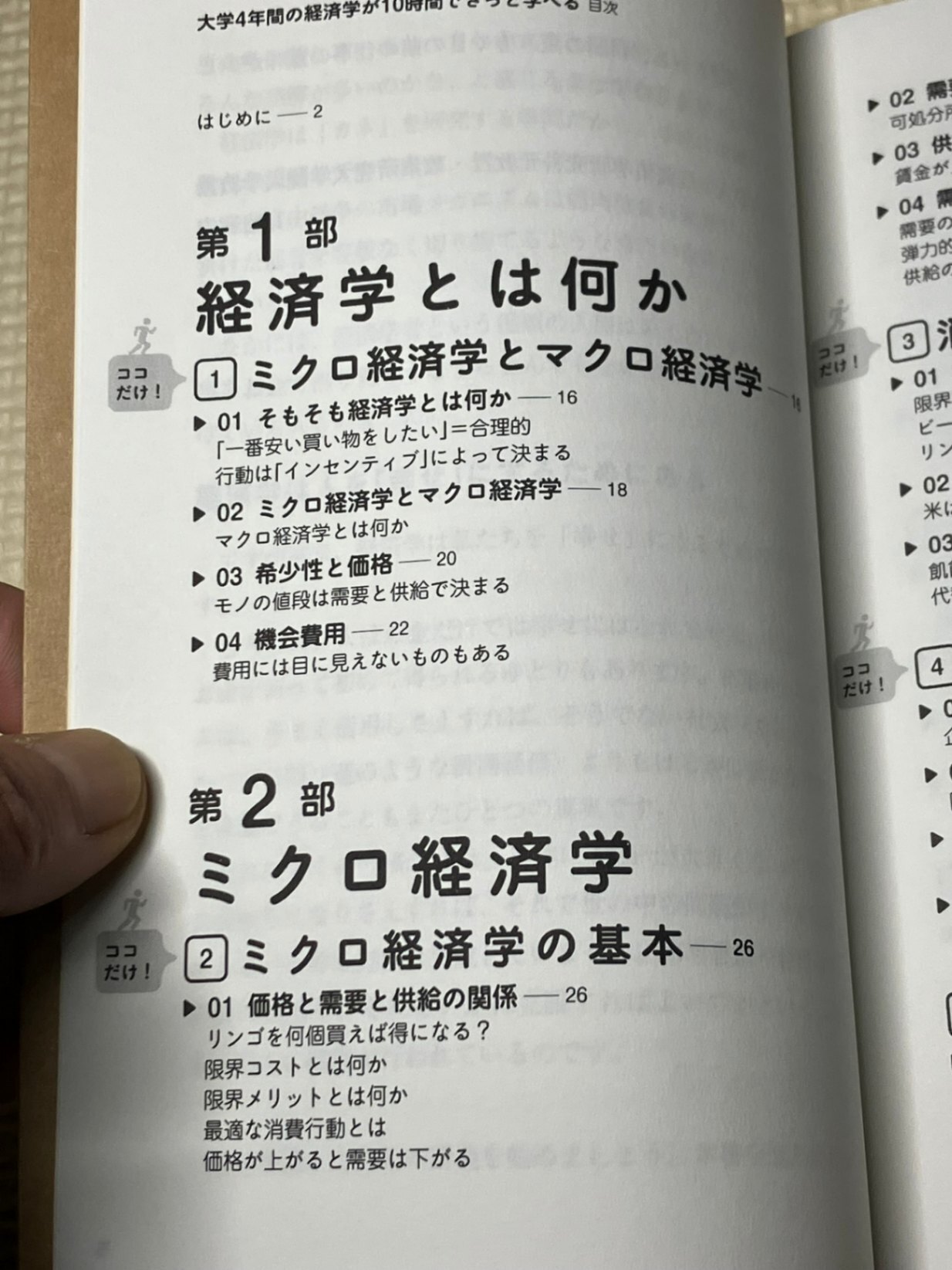 ・消費者・企業の行動、市場メカニズム、独占・外部性・情報の非対称性など、大学で学ぶ主要トピックを20項目に分け、「1日30分×20回=10時間」でざっと理解できる構成になっている。