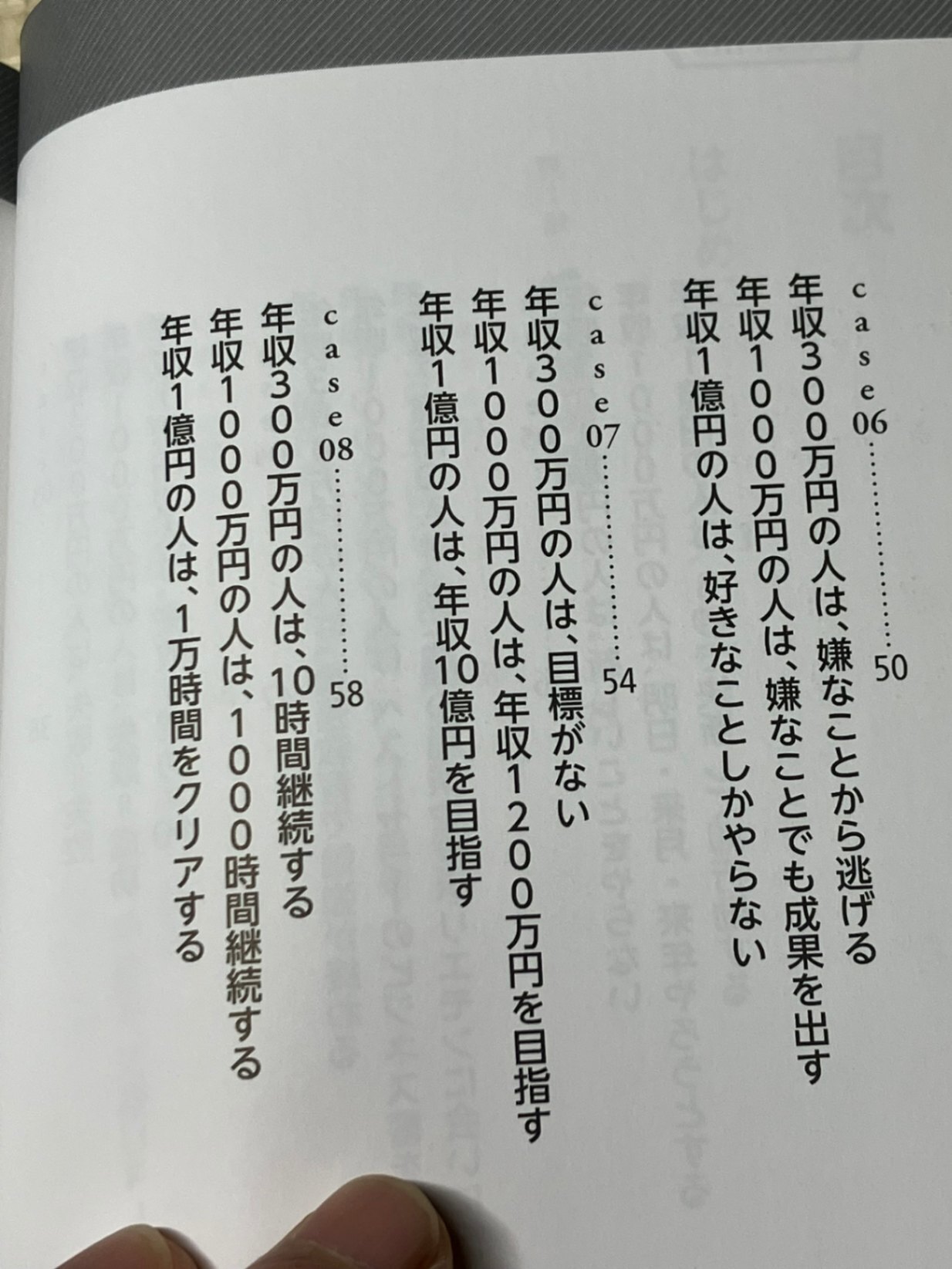 ・年収300万円の人の「悪習慣」として、嫌々やるMUST思考、時間とお金の浪費、テイク思考(もらうこと優先)などを挙げ、それが収入を固定してしまう原因だと指摘している。