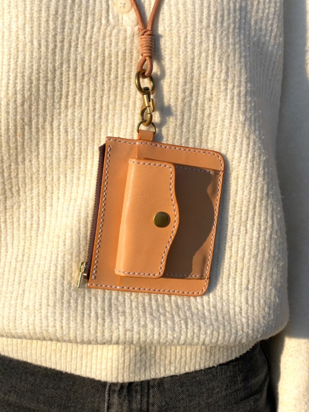 こちらは、姫路で鞣された植物タンニンなめし革を使用したネックウォレットです。