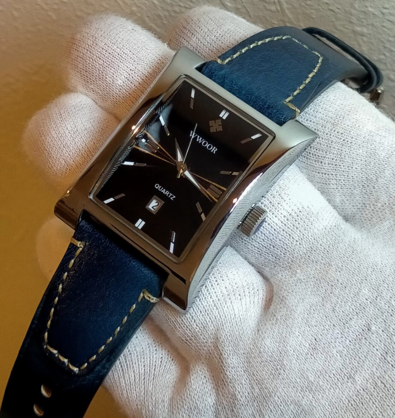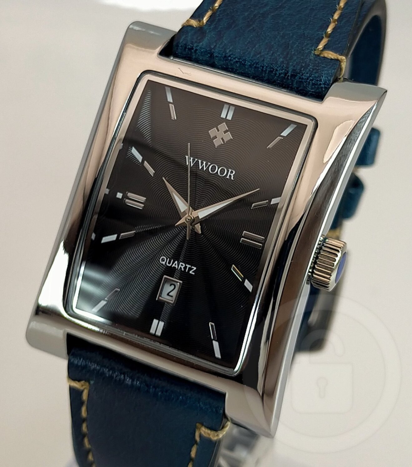 規格外の美しさ【ビヨンドアールレクタングル/新品】黒文字盤/アンティーク加工レザー(ロイヤルブルー)