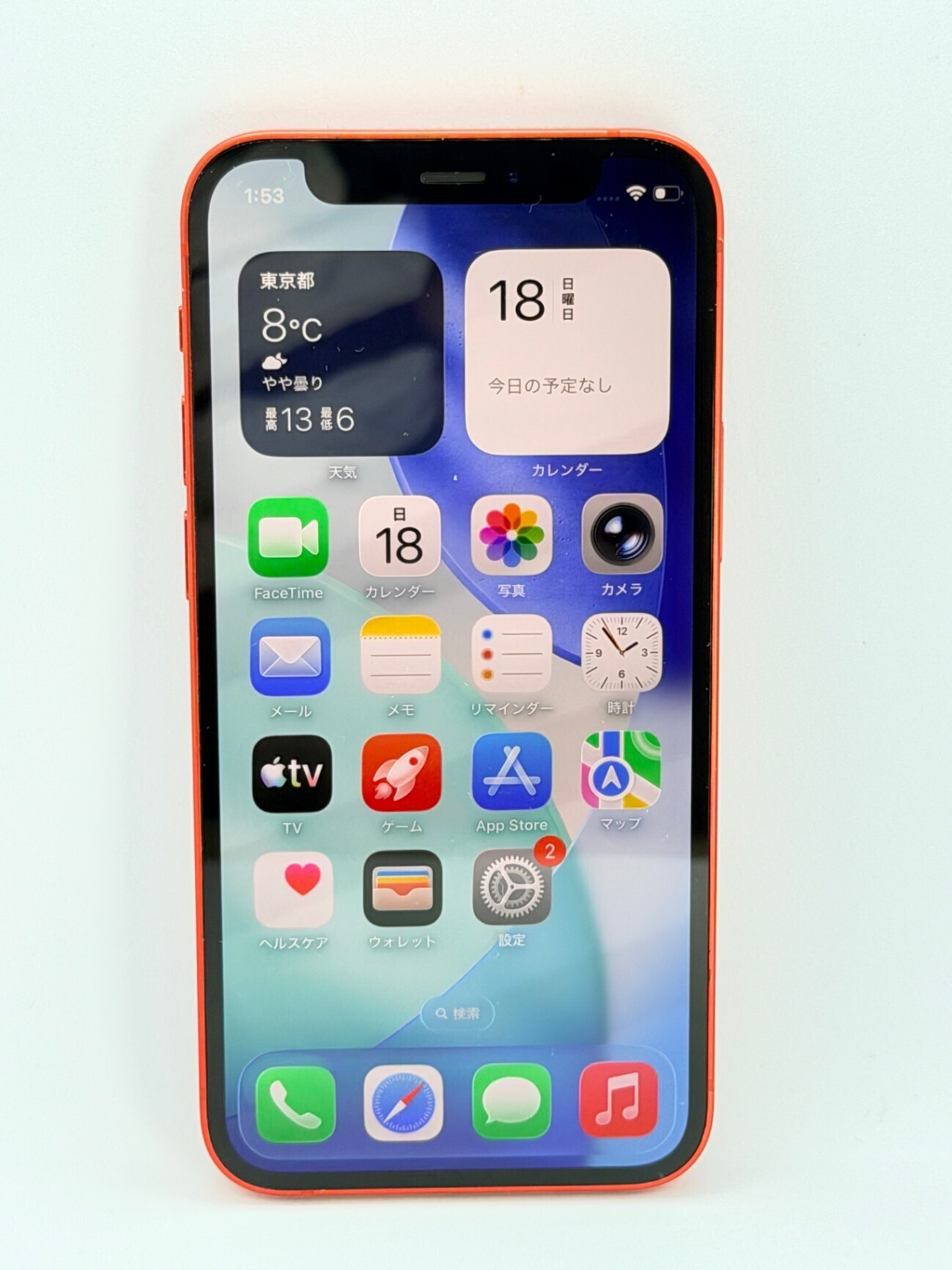 【BT100%】iPhone 12 mini 128GB レッド AU SIMロック解除済 #124