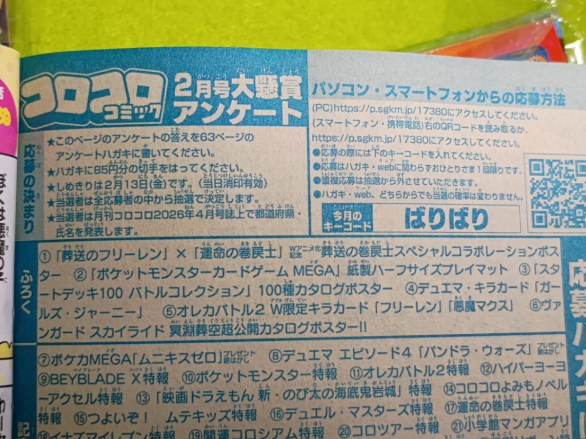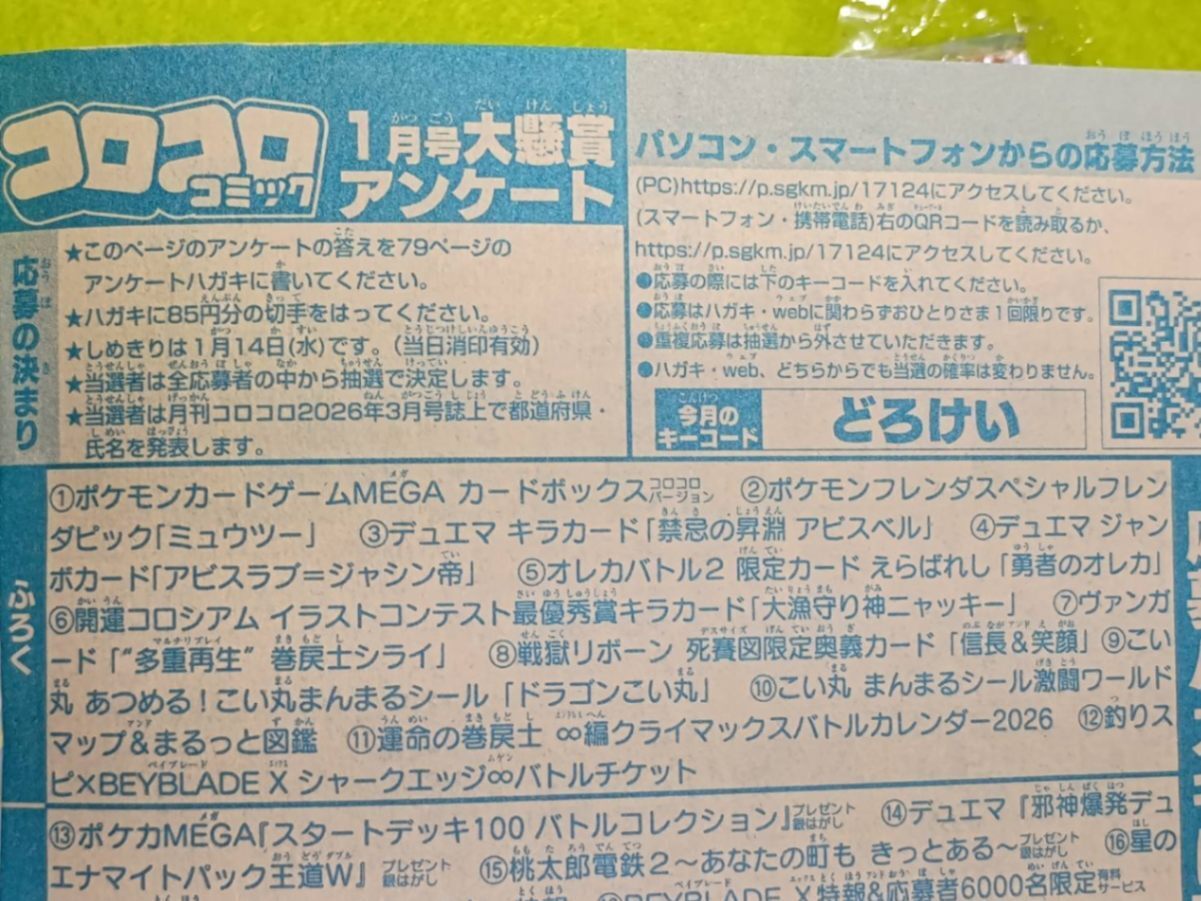 小学生の息子が購入したコロコロコミック(2026年1月・2月号)の付録です。