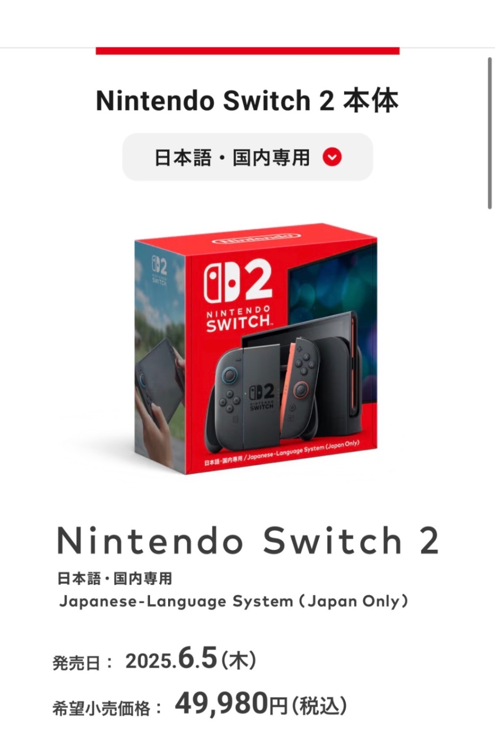 最新型 日本語専用のNintendo Switch