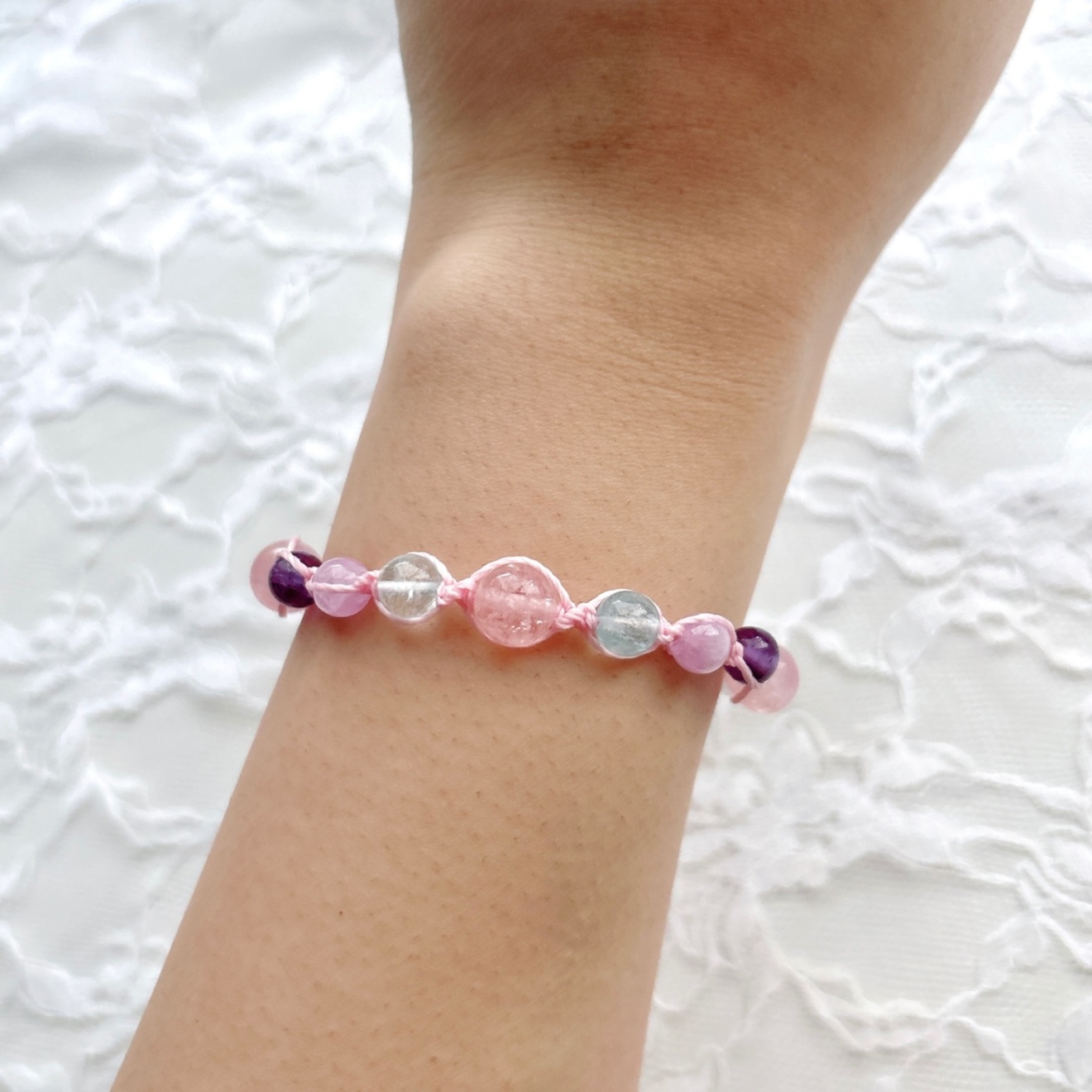 【ハンドメイド】パステルカラー 天然石 マクラメ編み ブレスレット