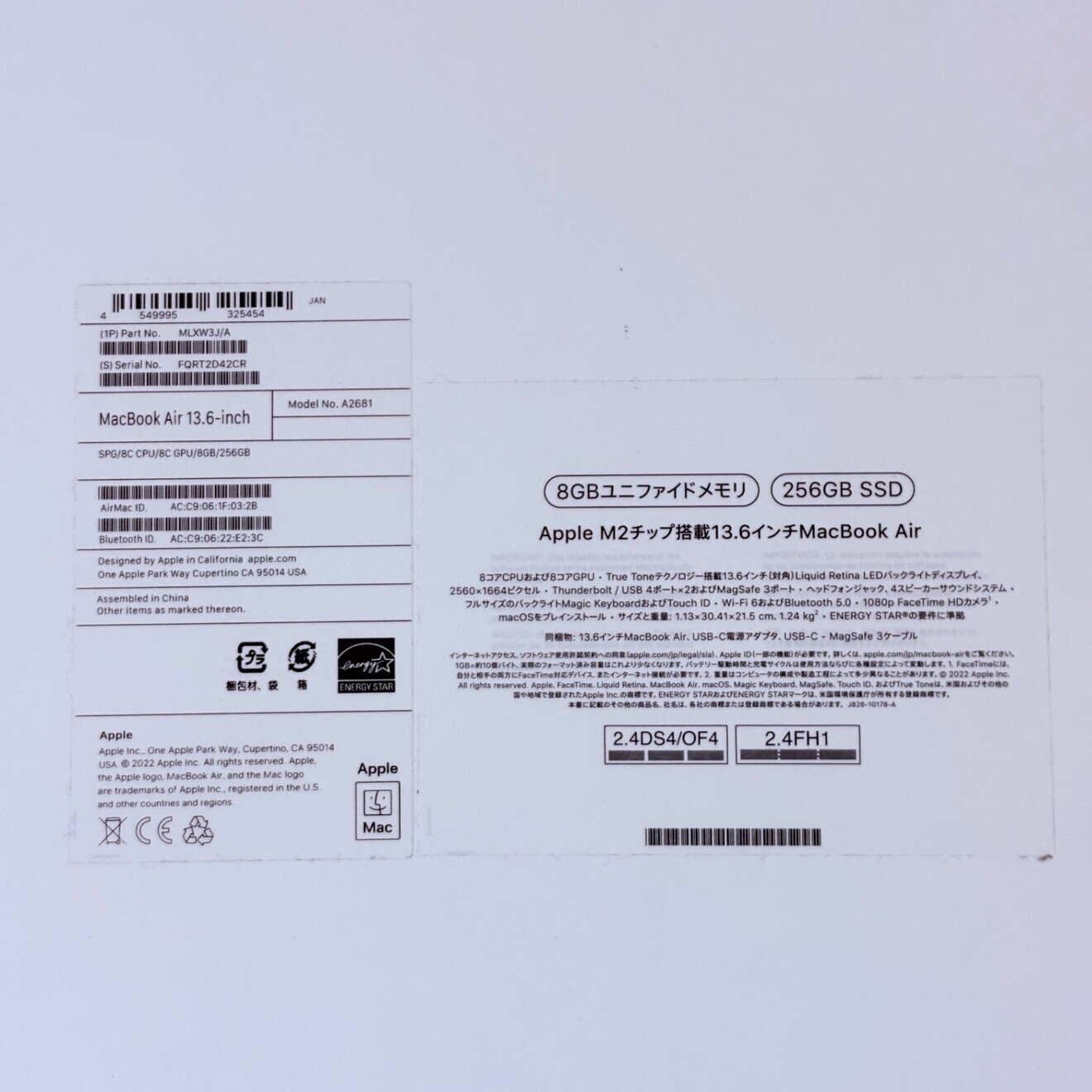 MacBookAir 13.6 M2 8GB 256GB 最大容量88%