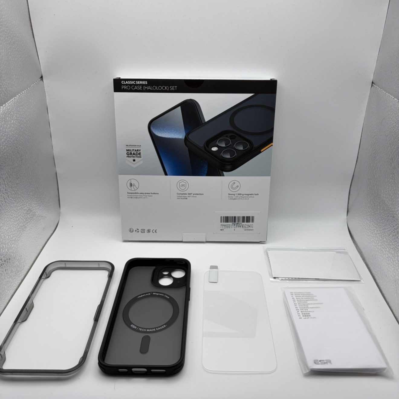 ESR iPhone15用 MagSafe対応 耐衝撃ケース+ガラスフィルムセット 米軍MIL規格