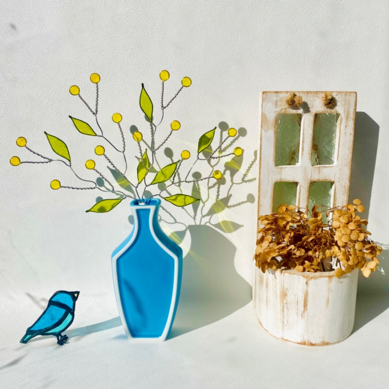 ミモザのスワッグ*一輪挿しにも飾れるガラスのような透明感