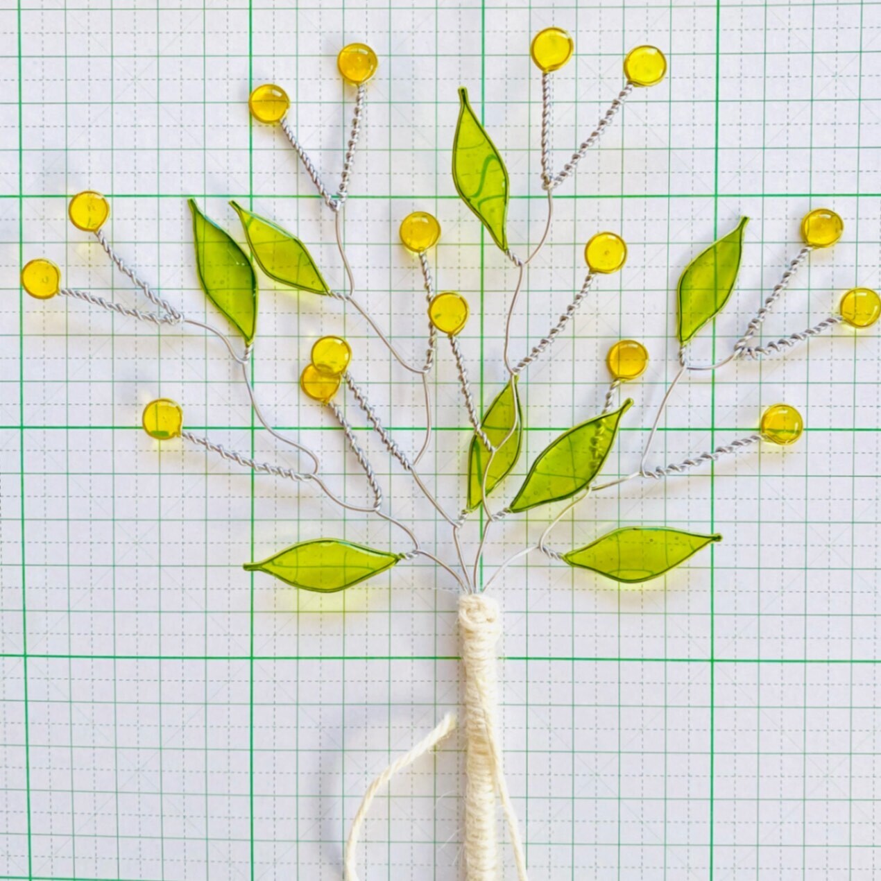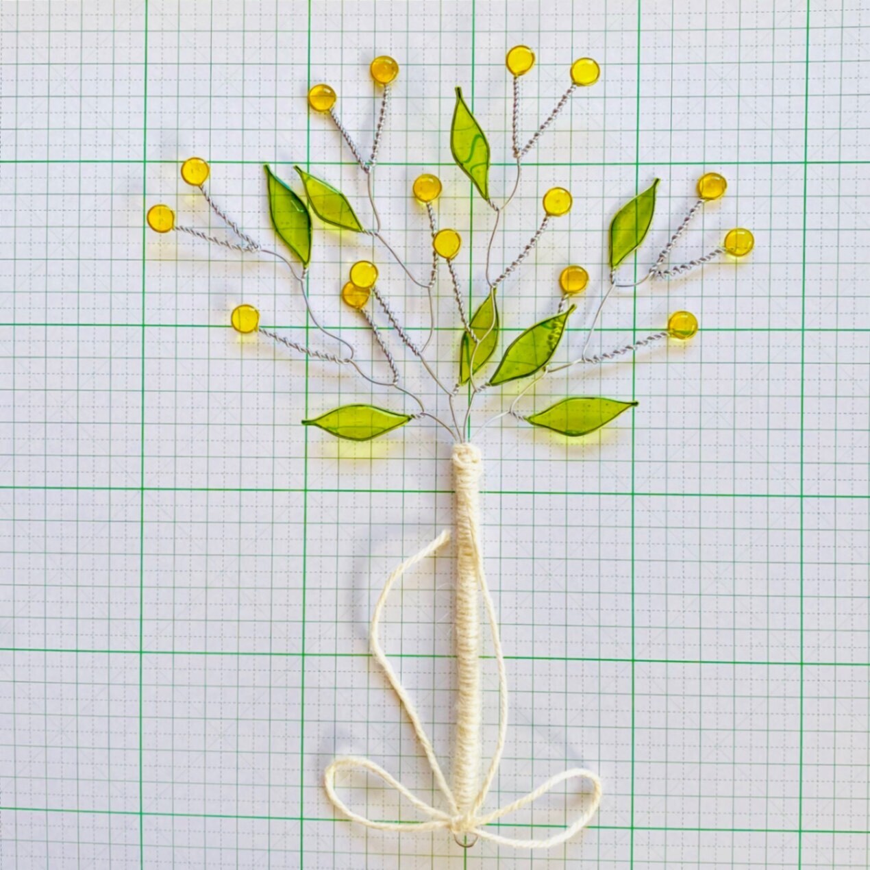 ミモザをイメージしたワイヤークラフトのスワッグです。