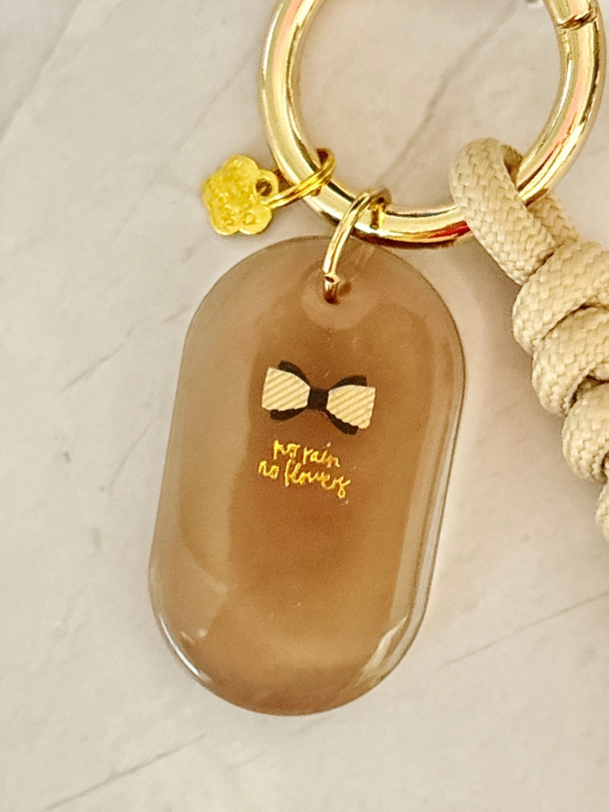上品ベージュのパラコード付きバックチャーム |ゴールド金具×艶ブラウン