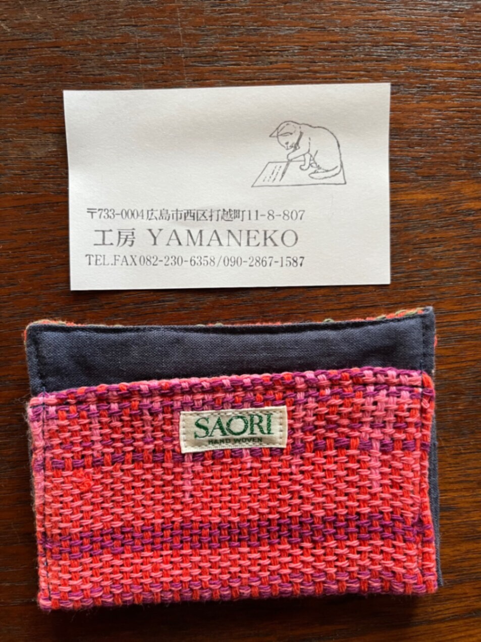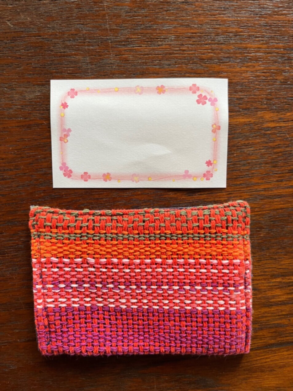 【さをり織り】カードケース(オレンジ系)❣️味わいのあるお品です😊