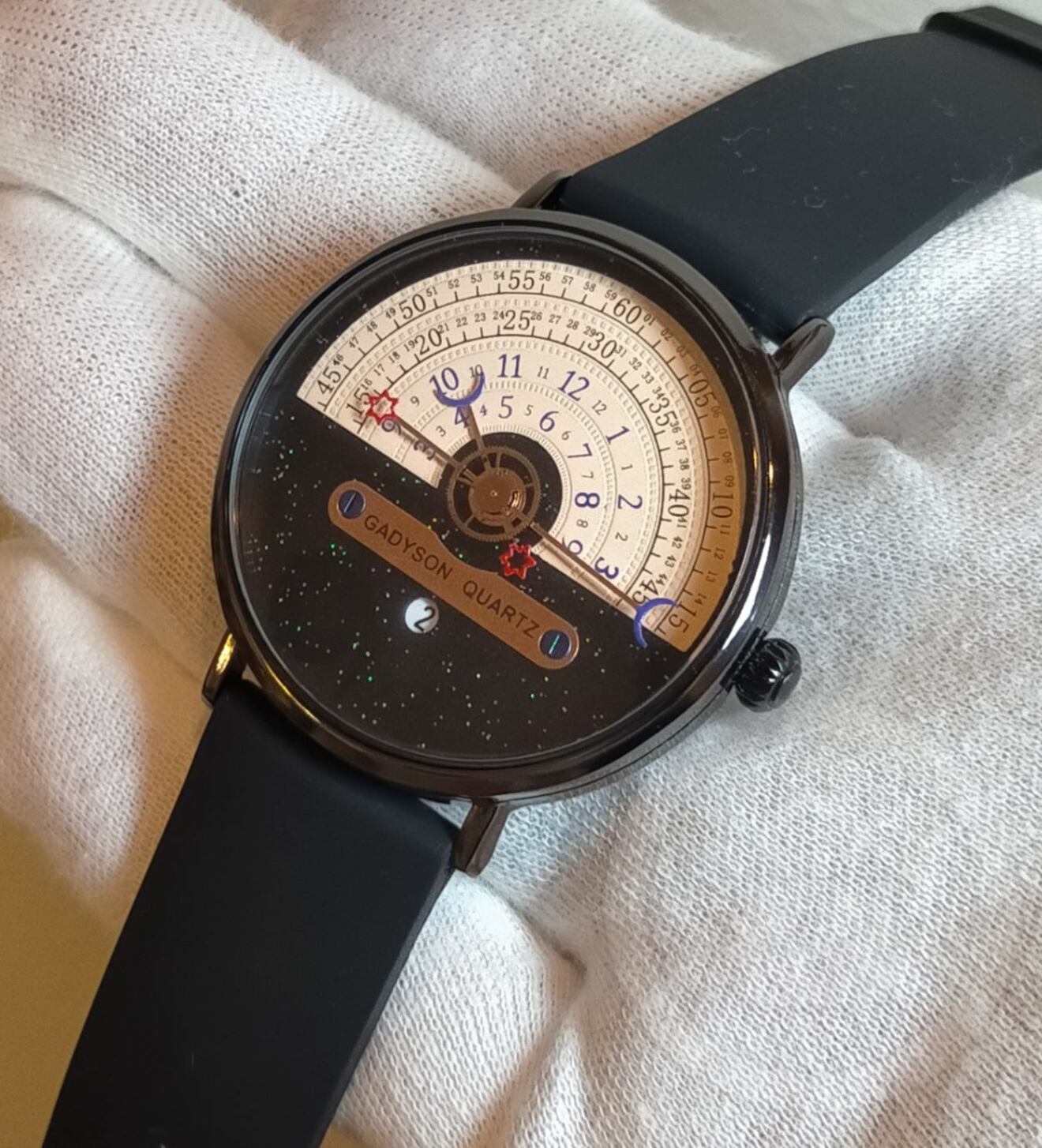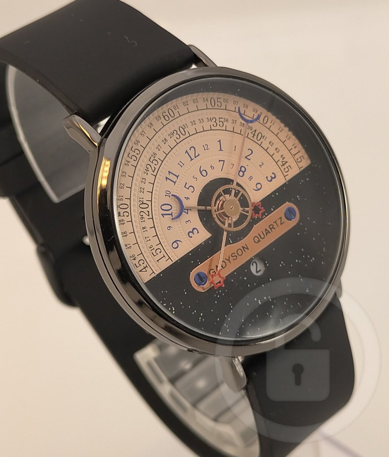 常識を覆す画期的時刻表示方【ラバーバンドでオールシーン対応ドレスウォッチに/新品】日付 ブラック