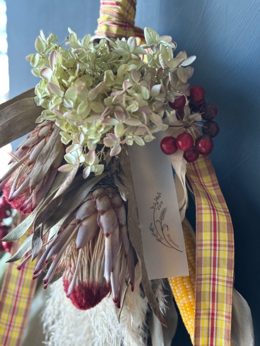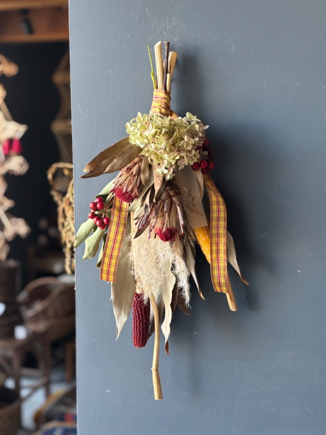 実りを束ねた コーンとアジサイのドライフラワースワッグ(一点もの)