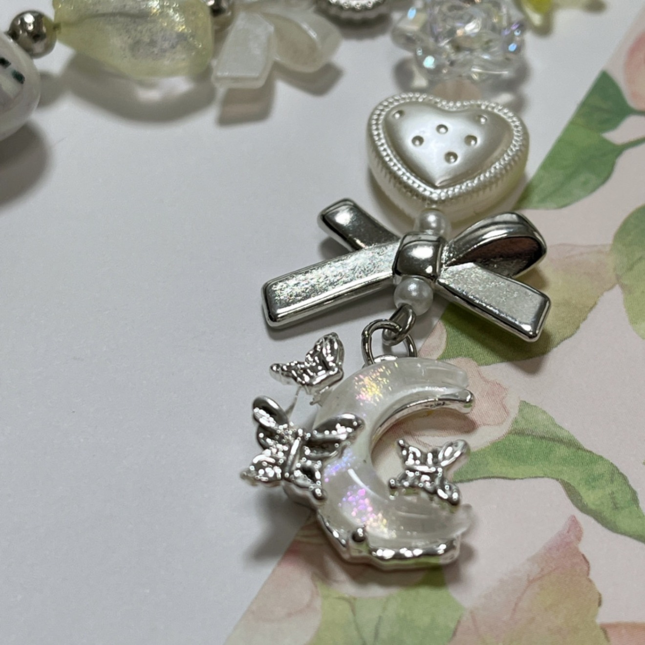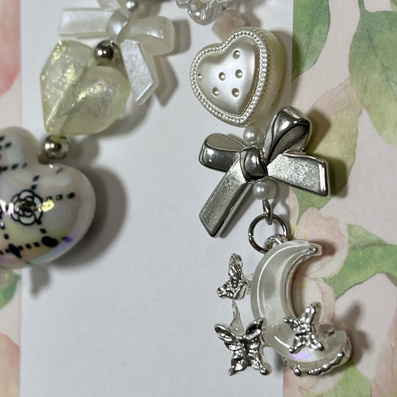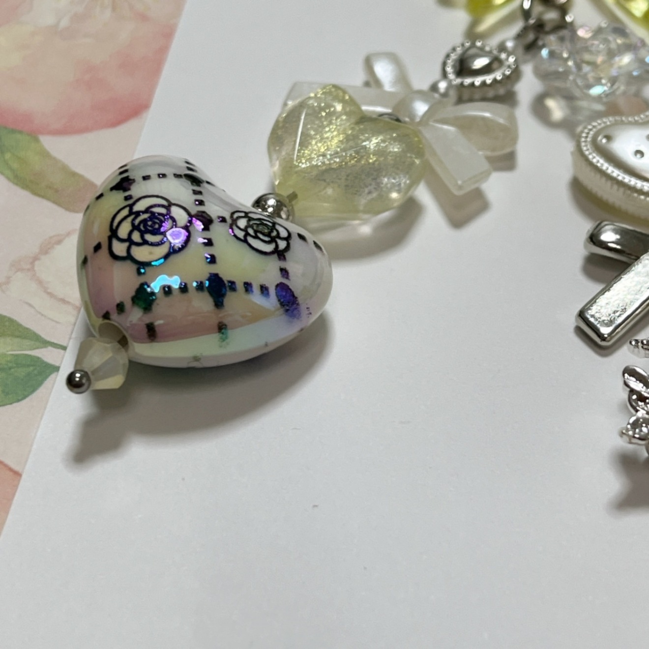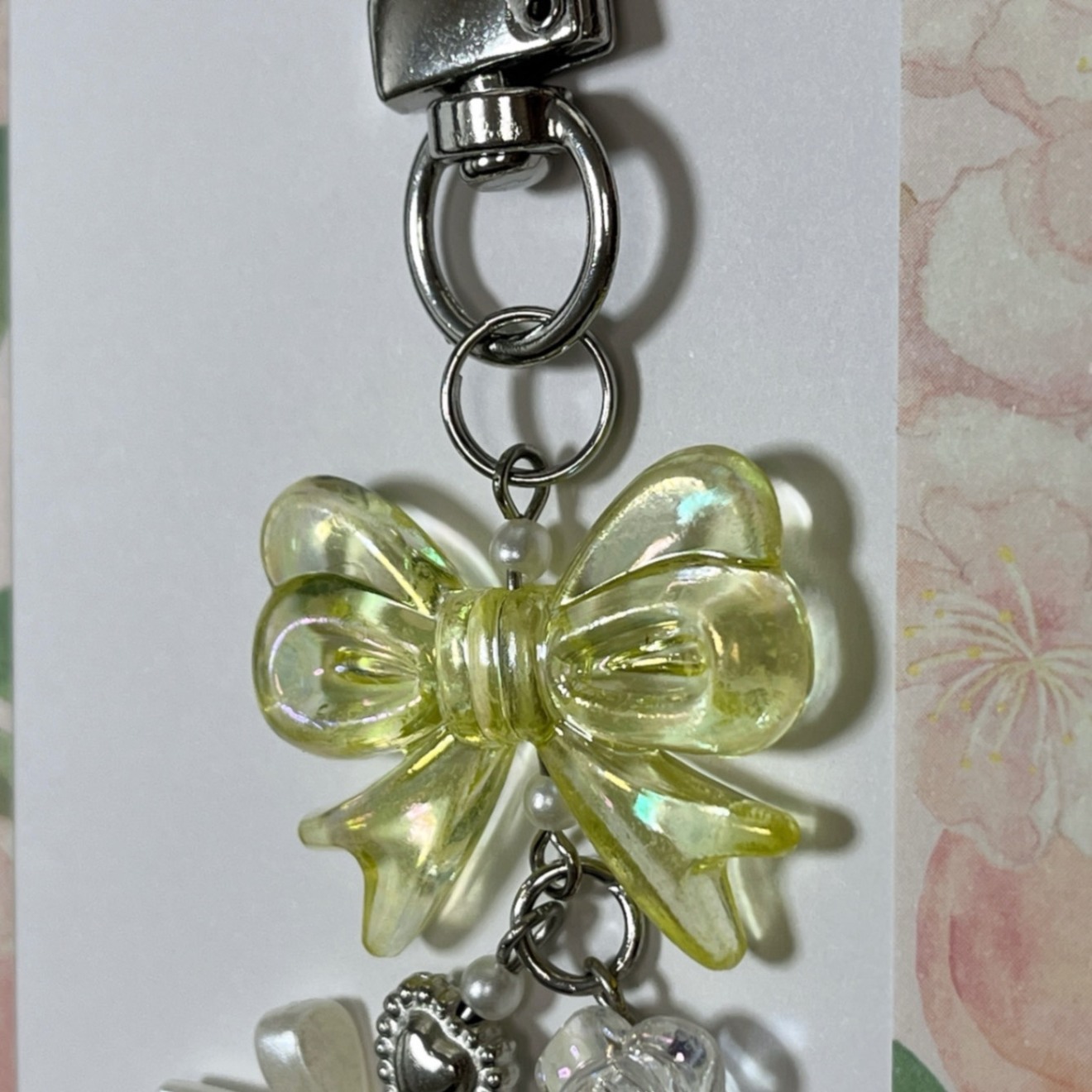 透明感のあるリボンとハートを重ねたきらめくチャームキーホルダーです🎀✨今大流行の推し活ノートに!