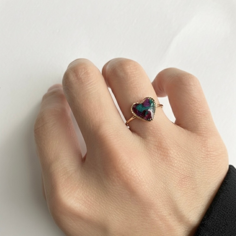 ・1センチのハートフレームの中にアフリカ布を詰め込んだ大人可愛いゴールドリング