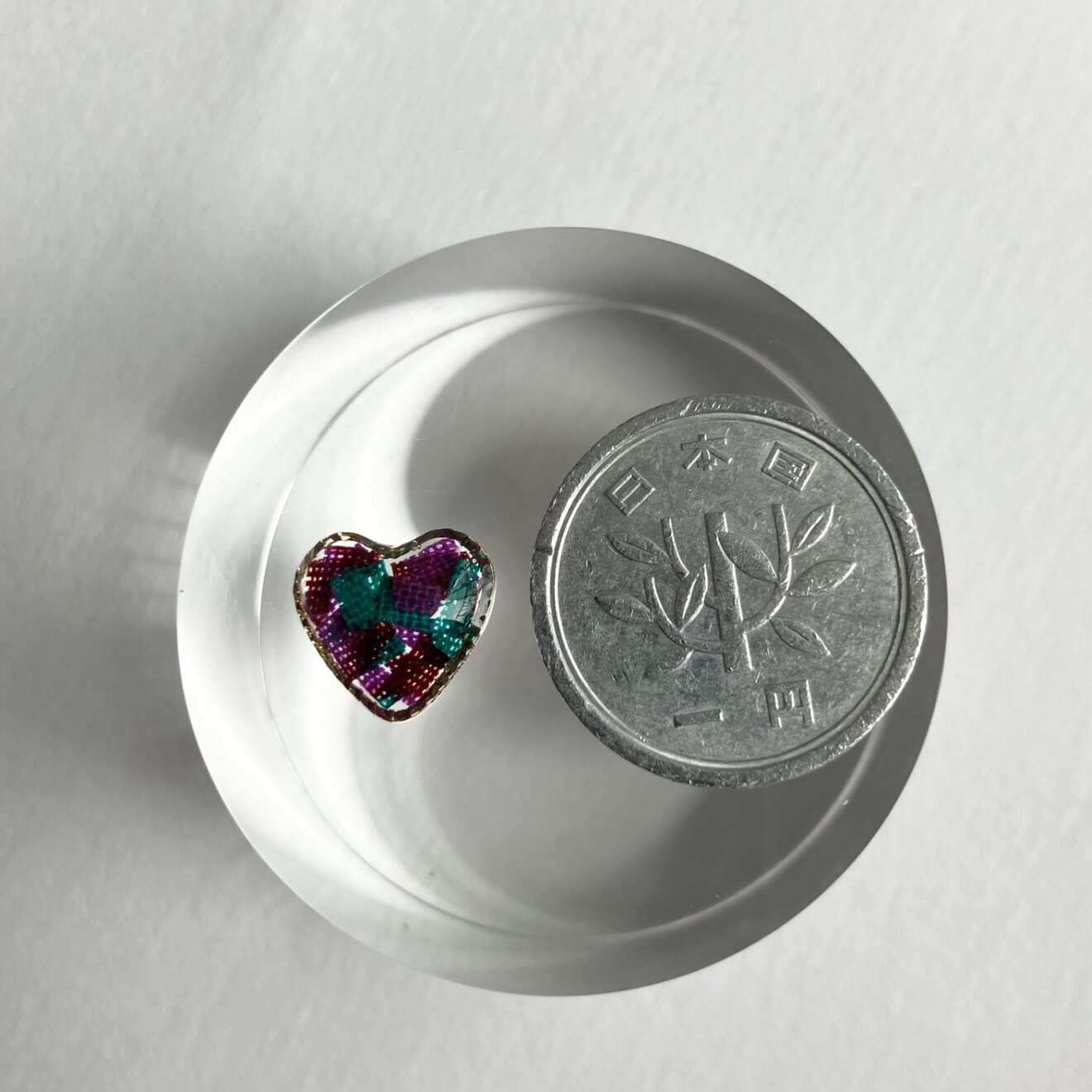 アフリカ布のハギレを1センチハートの中に閉じ込めています🥰