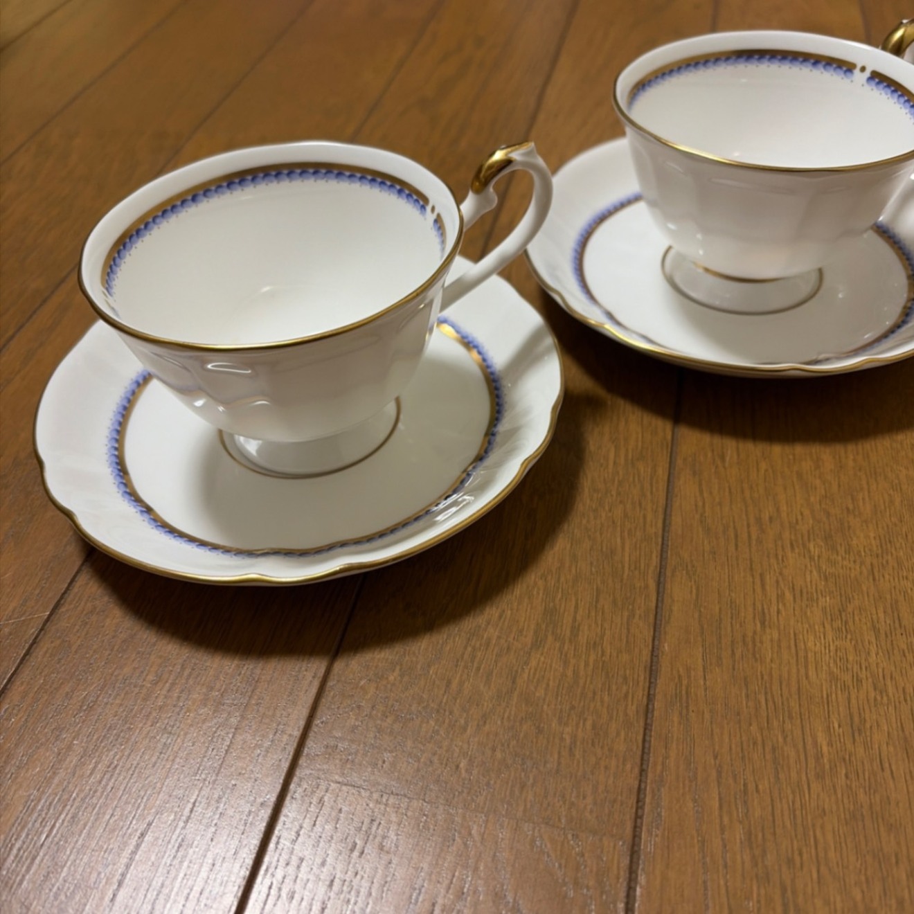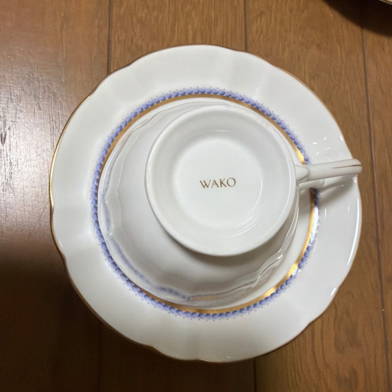 【未使用】WAKO 和光 カップ&ソーサー 2客セット 金彩 ブルー 銀座