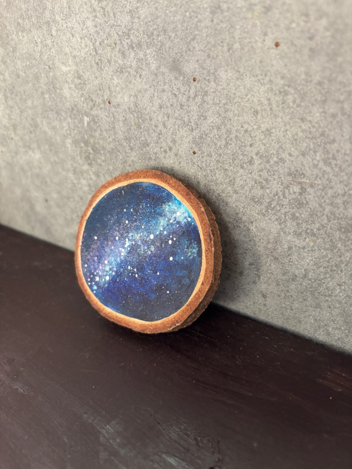 天然の木に描いたアクリル画です。