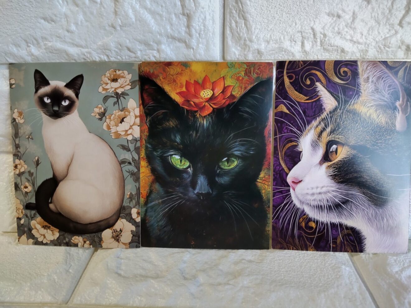 海外アート風の猫デザインが美しい、ポストカード6枚セットです。