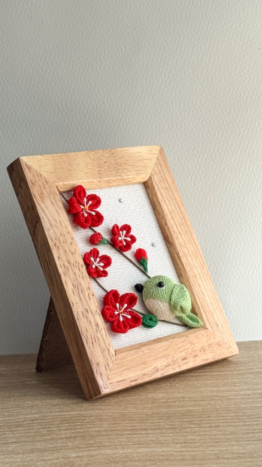 ちりめん細工 梅とメジロのミニフォトフレーム
