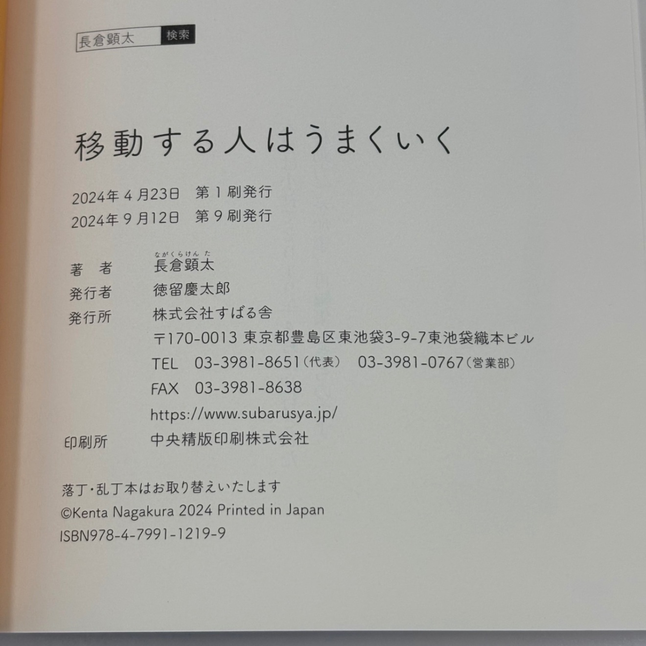 長倉顕太さんの『移動力 新版』(すばる舎)です。