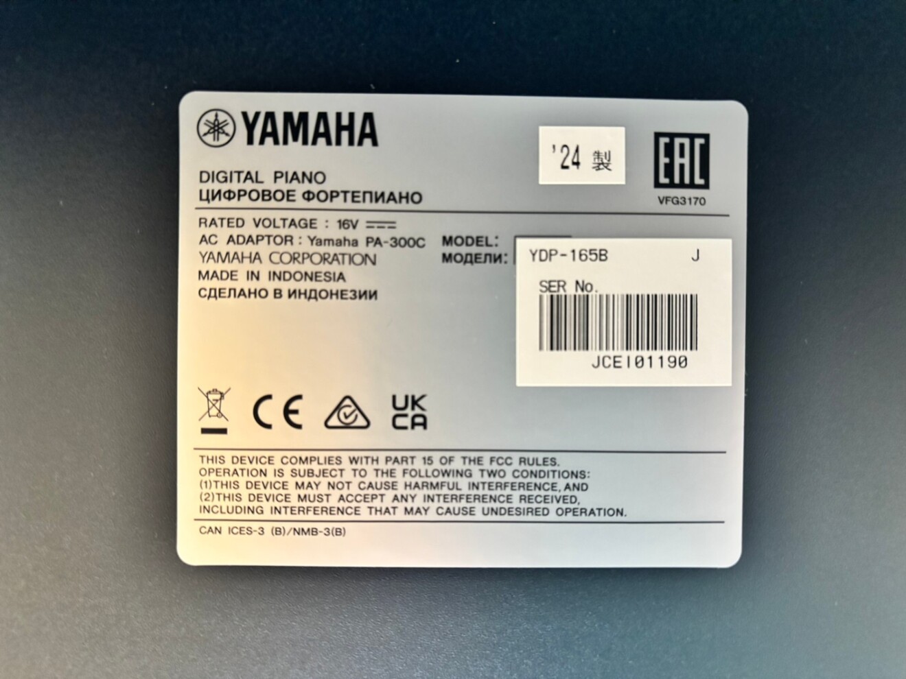 2024年4月に新品で購入したヤマハ「ARIUS(アリウス)」の最上位モデル(YDP-165)です。 3ヶ月程度練習に使用しました。