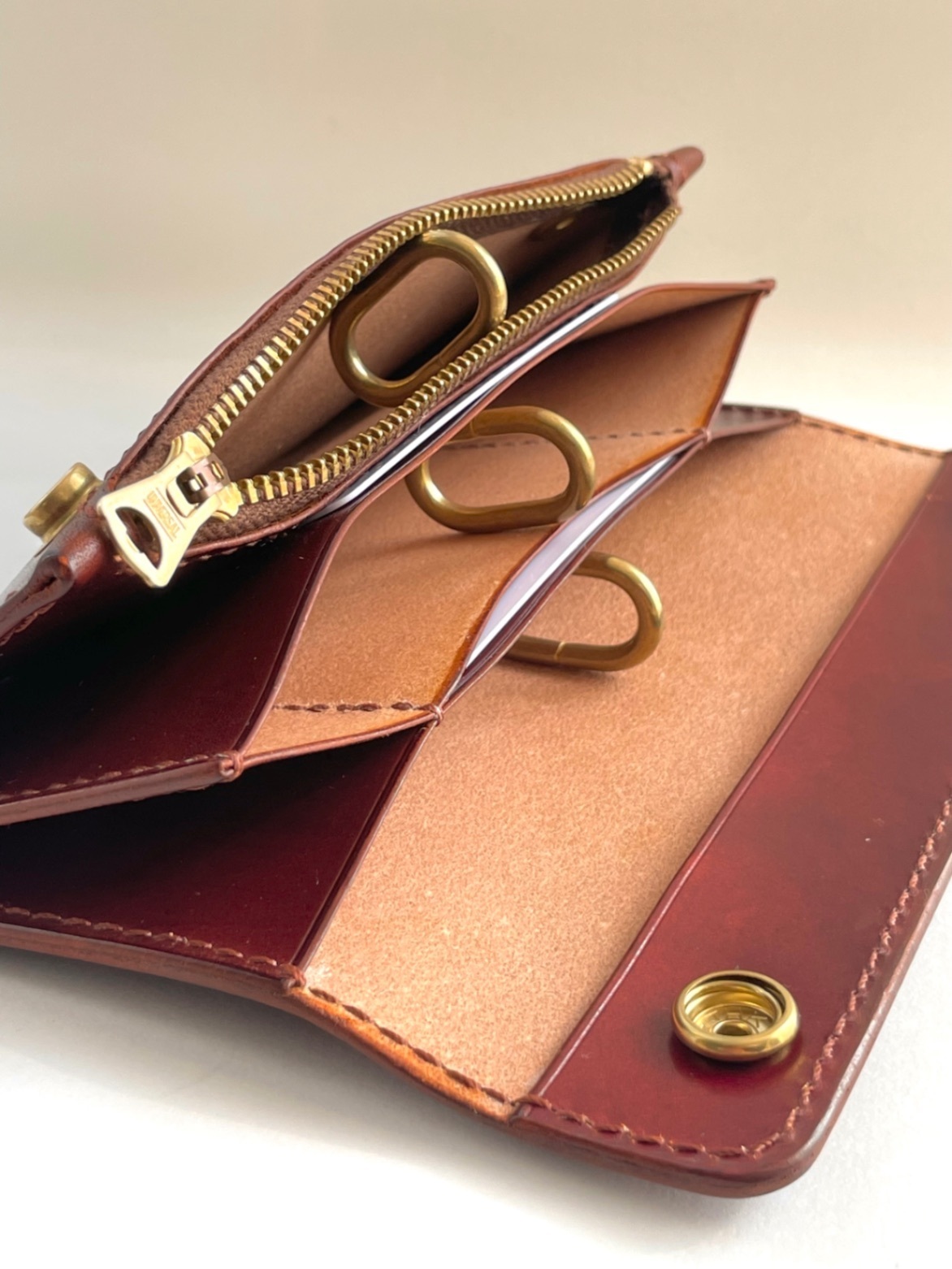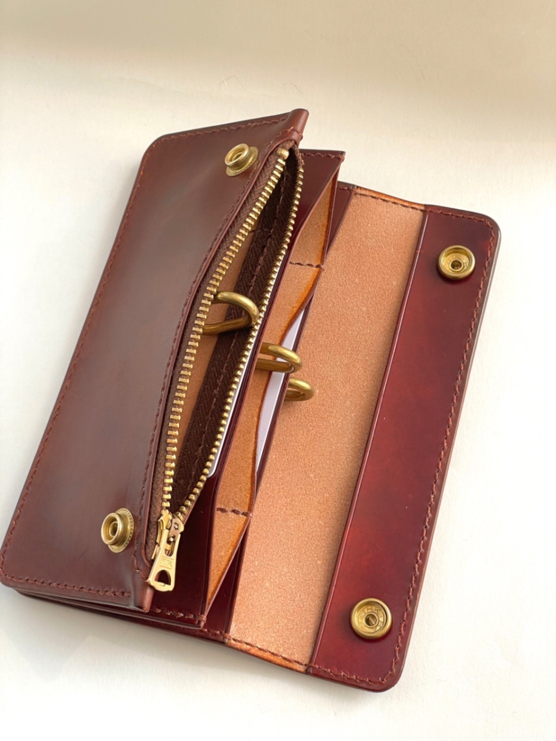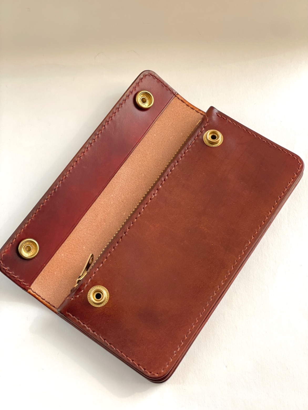 ロングトラッカーウォレット|三層タイプ|本革(牛革)ヌメ革 ×手縫い ×真鍮金具