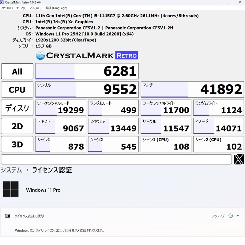 ☘️CPU:インテル Core i5-1145G7 2.6GHz(最大4.4GHz) 4コア8スレッド