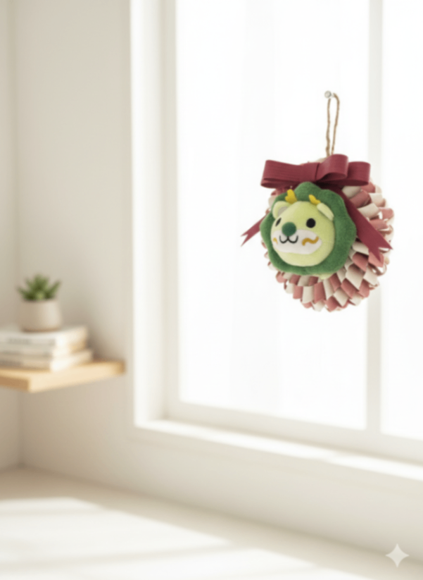 壁に飾って楽しんだり、机や棚に置いてリース座布団にちょこんと座る学長に癒されませんか?