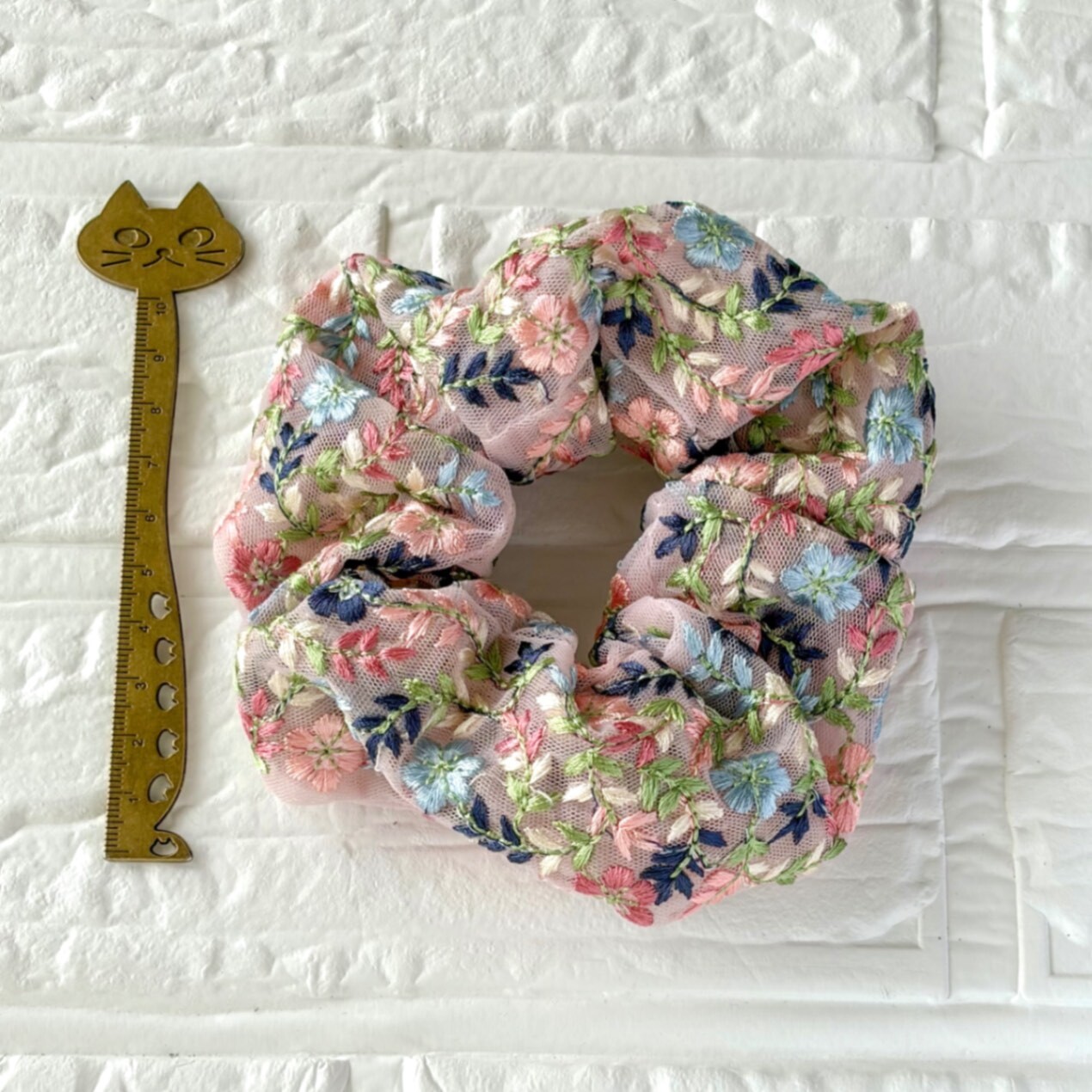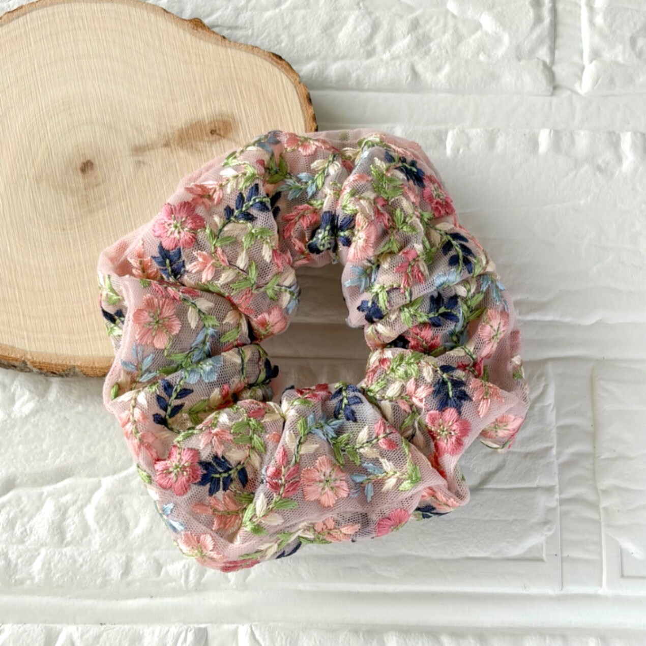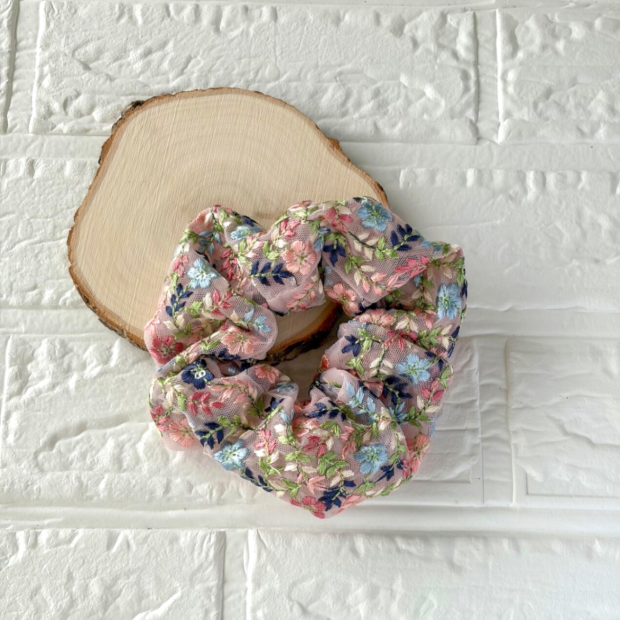 インド刺繍リボン🎀シュシュ ピンク小花